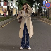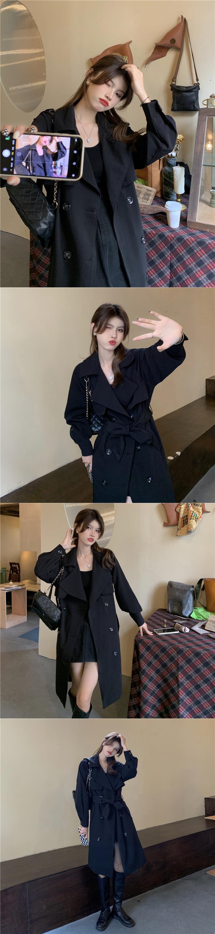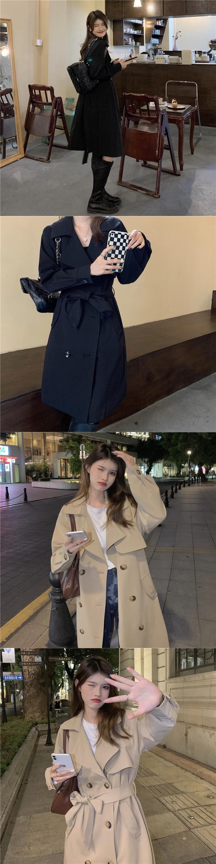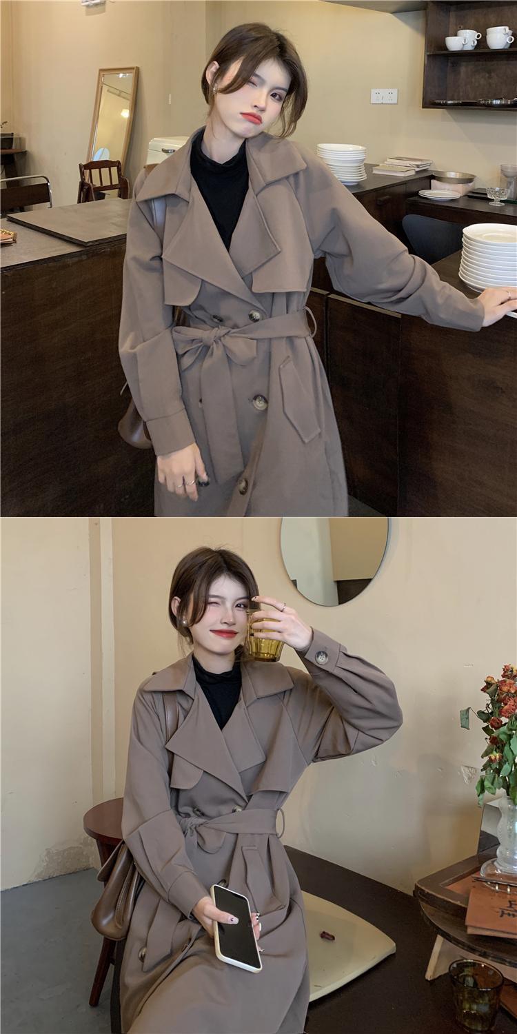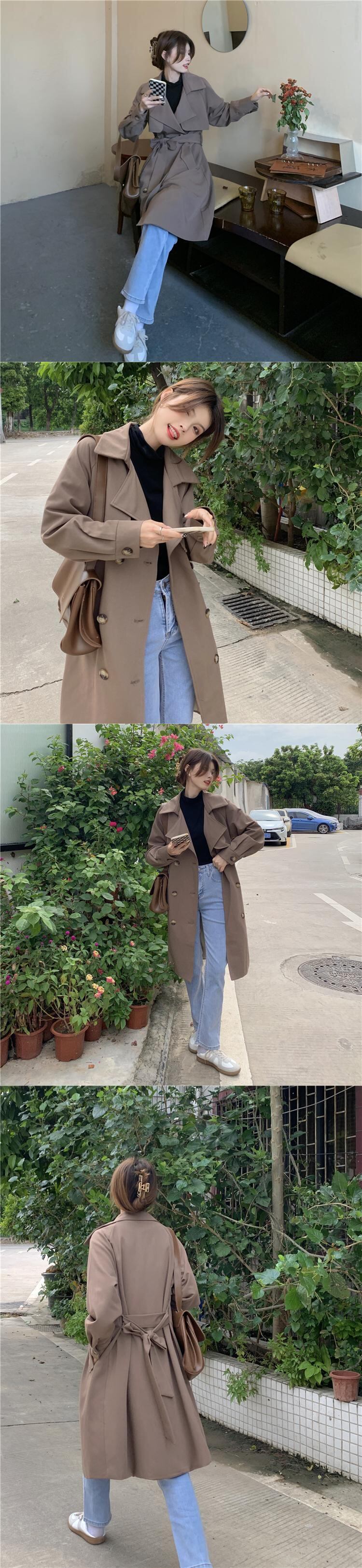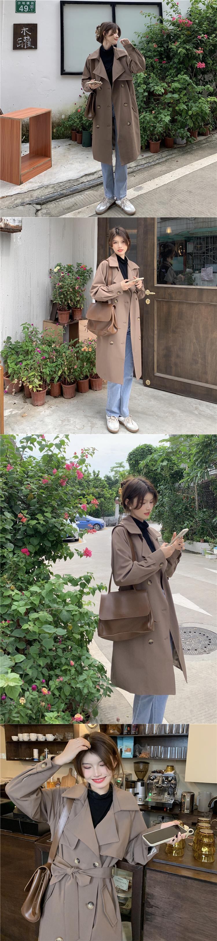 2021年秋バージョンの新しいルーズ長袖ウインドブレーカーコートコートオールマッチミドル丈ダブルブレストトップ婦人服 ロング オータム 秋物 可可里35789831673