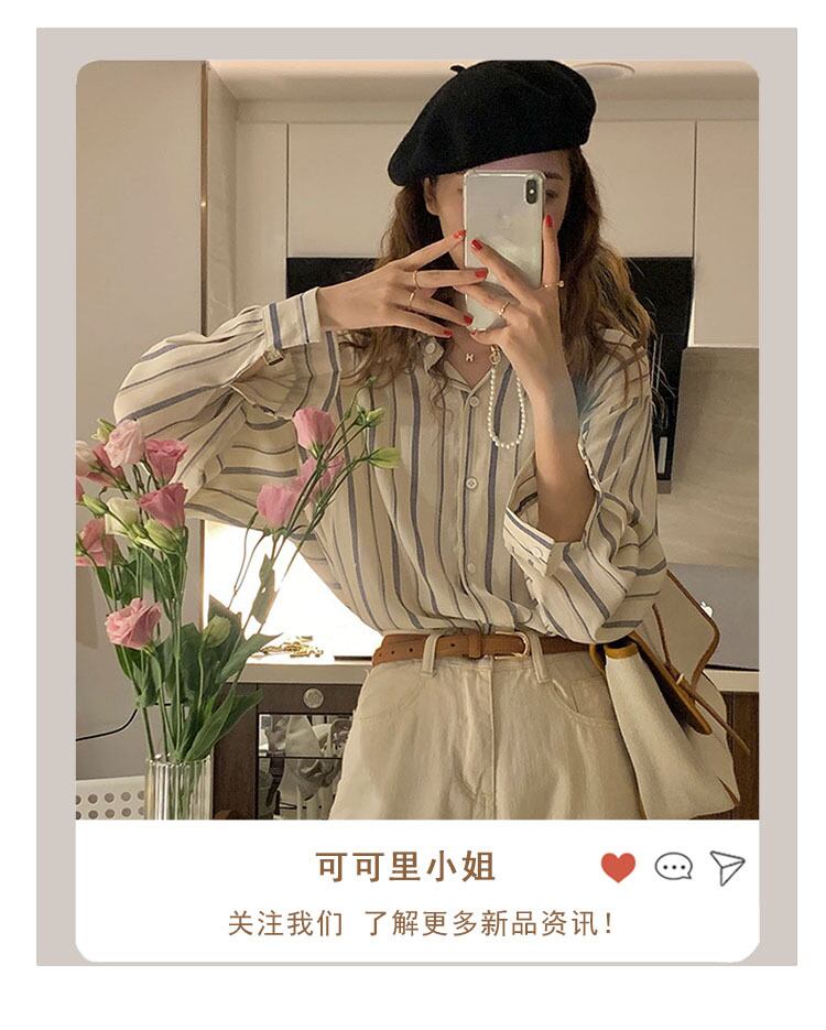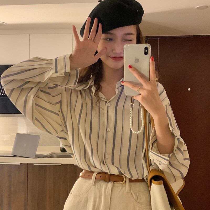 ストライプの初秋シャツシックシックトップ2021新春秋デザインセンスニッチ長袖レトロインタイド ロング スプリング 春物 オータム 秋物 可可里25466956780