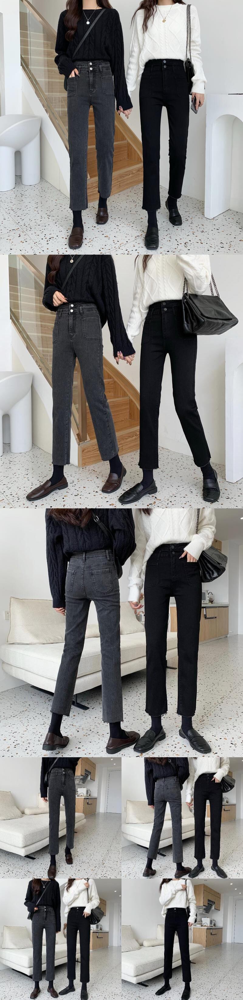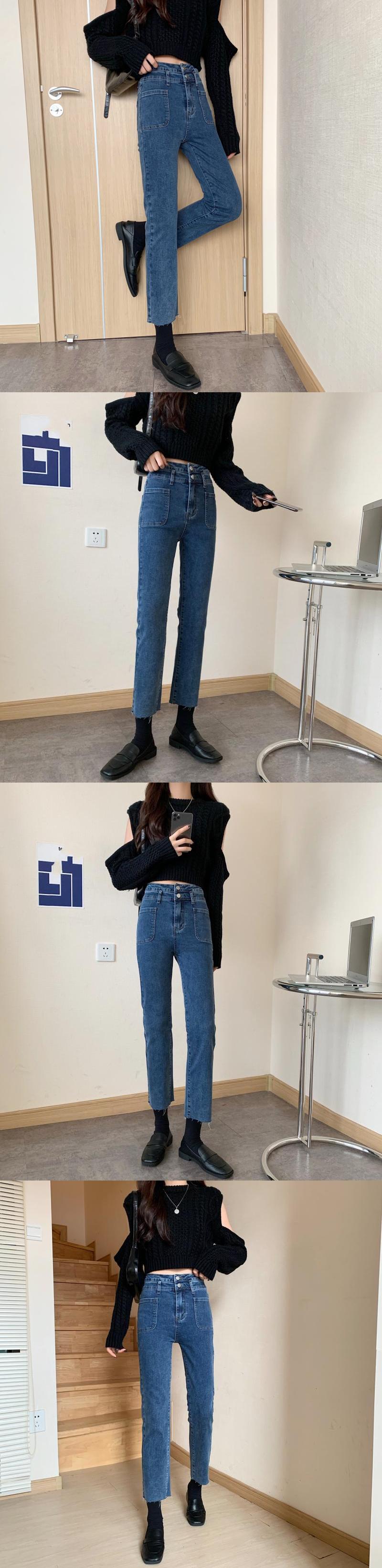 ダークジーンズ2021年秋新しいレトロなハイウエストの薄いセクションの小さな9ポイントストレートレッグパンツレディースパンツ オータム 秋物 可可里1728907287