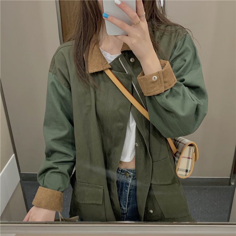 ツーリングジャケット女性秋冬バージョン2021新デザインセンスクールソルトラペルルーズ長袖ジャケットタイドイン ロング オータム 秋物 ウィンター 冬物 可可里80476608053