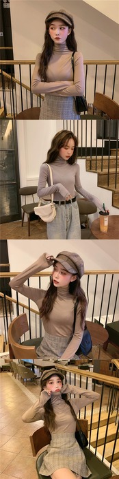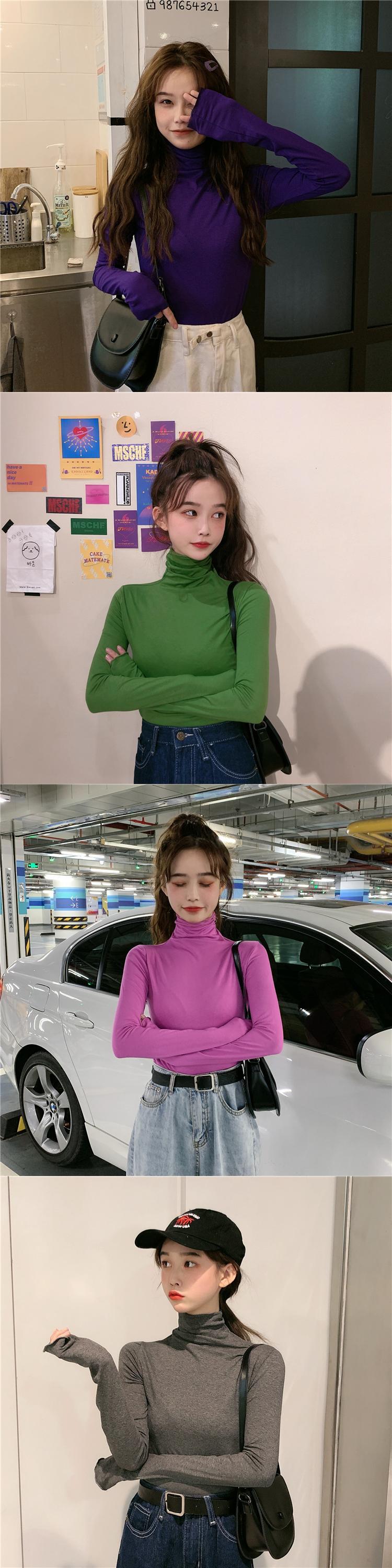 ハーフハイネックボトミングTシャツ秋バージョン2021新しいスリムで薄いスタイルと無地の長袖シャツの女性 ロング オータム 秋物 ソリッドカラー 可可里84992866756