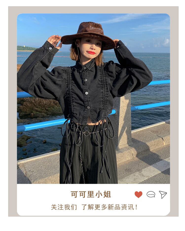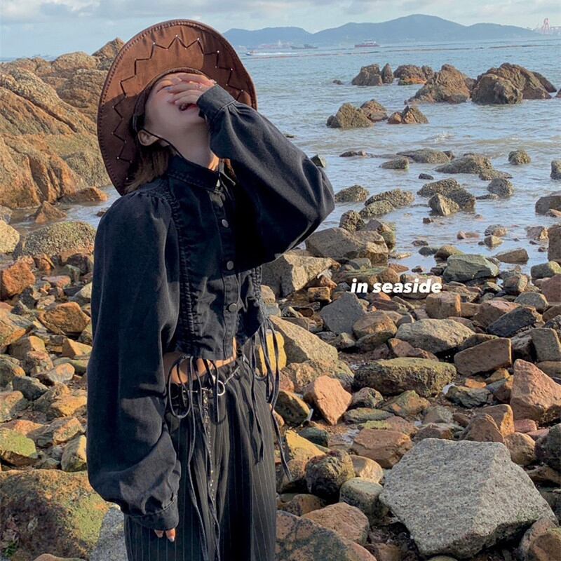デニムジャケット女性クールソルトデザインセンス巾着ショート秋バージョン2021ニューファッション長袖トップタイド ロング オータム 秋物 可可里37615761545