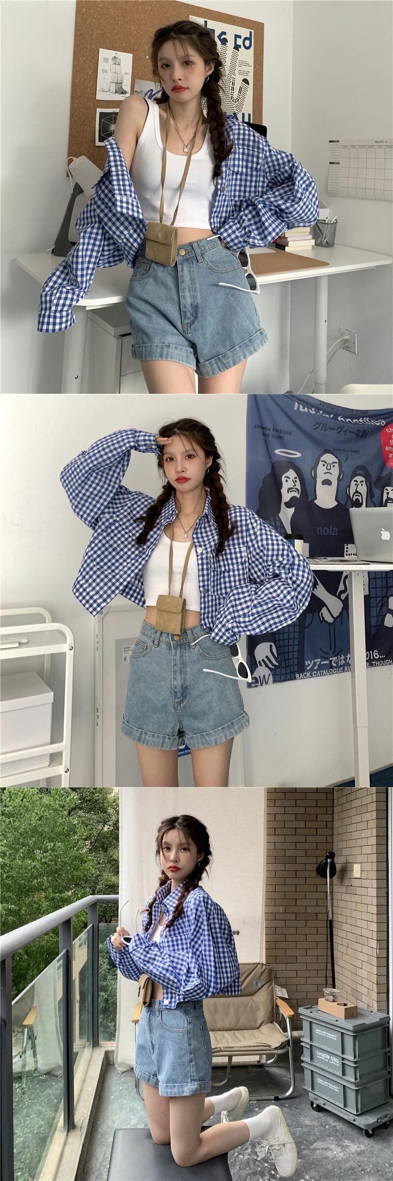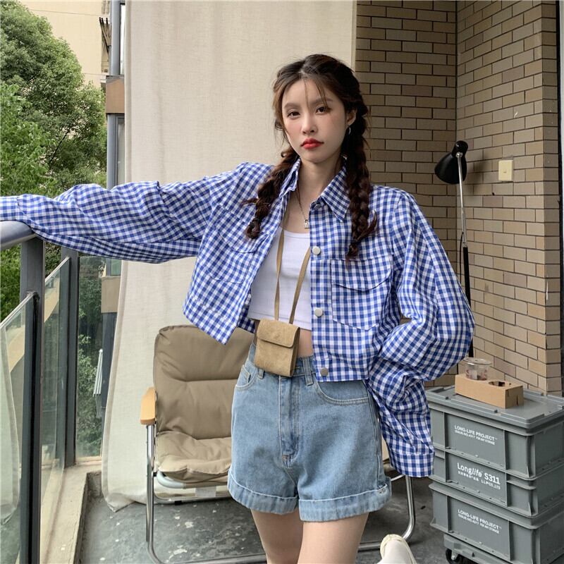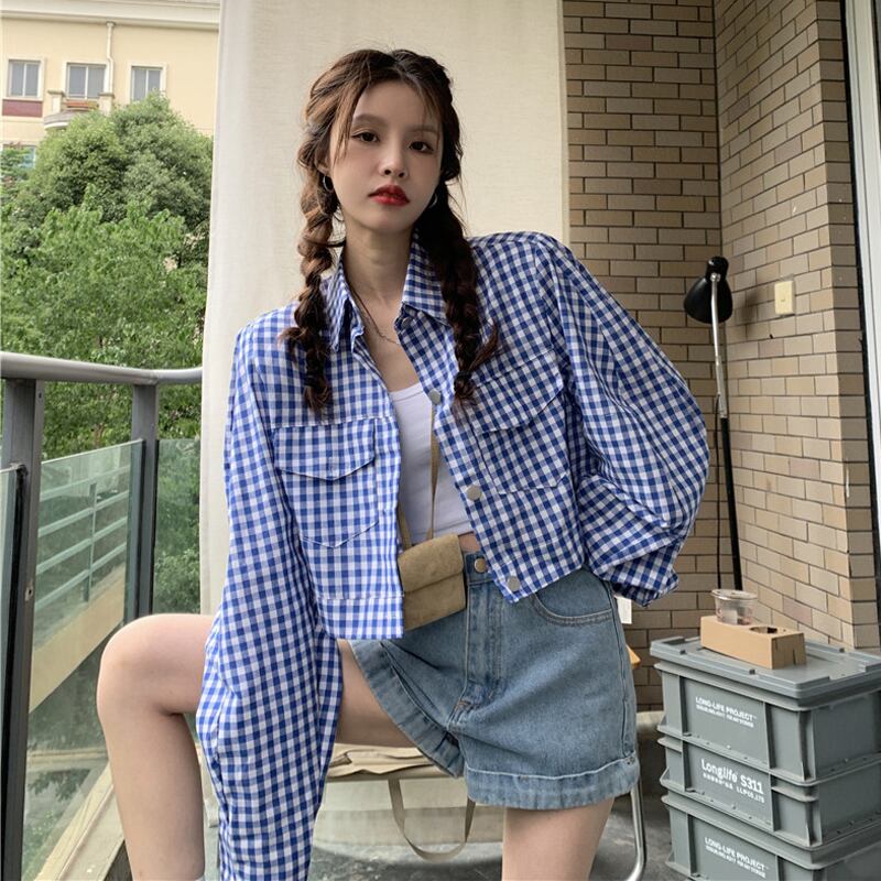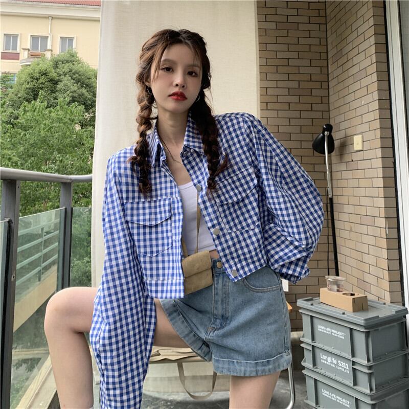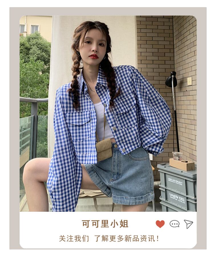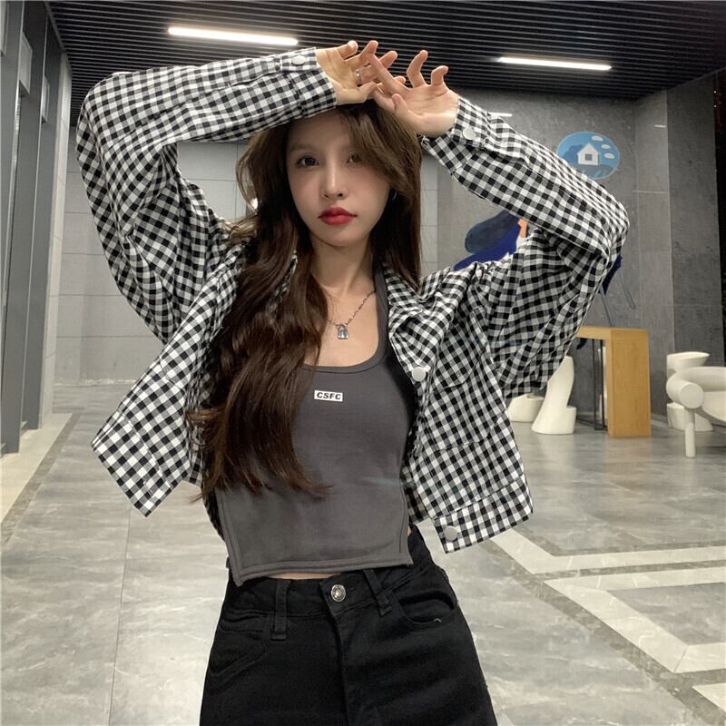 夏バージョン2021新しいスリムファッションオールマッチシックなチェック柄ポロカラー長袖ジャケットは女性の潮を上回ります ロング サマー 夏物 可可里10731226268