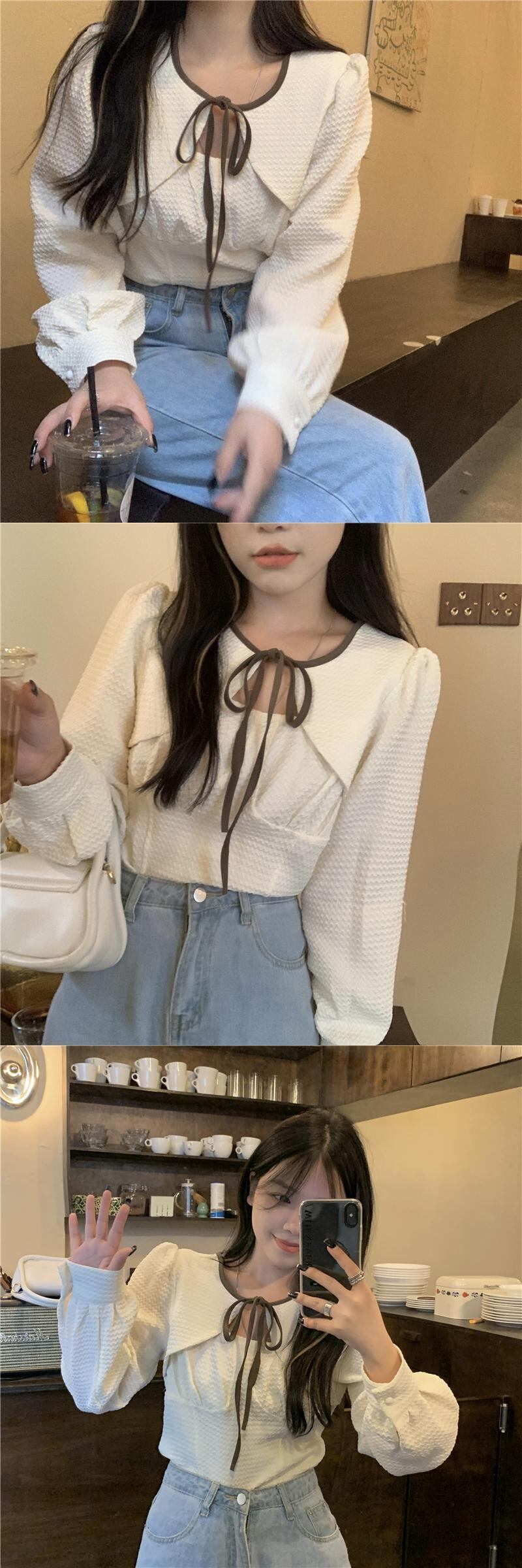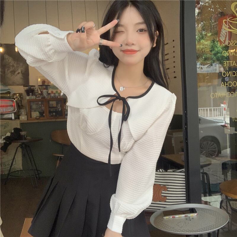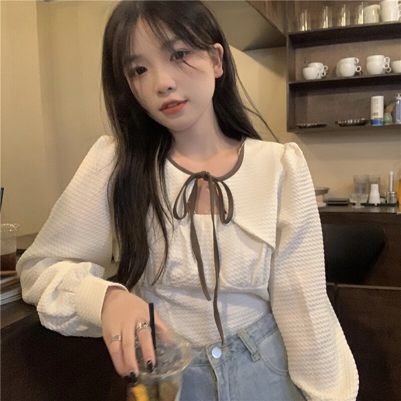 秋バージョン2021新しい純粋な欲望風薄いファッションデザインセンスレース長袖シャツブラウス女子学生 ロング オータム 秋物 ピュア 可可里38918585925