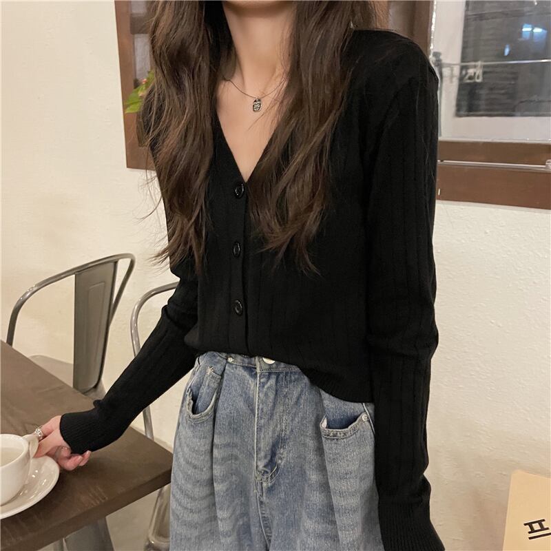秋バージョン2021新しいルーズファッション年齢を減らす無地のシングルブレストVネック長袖セーター女子学生 ロング オータム 秋物 ソリッドカラー 可可里16680954178