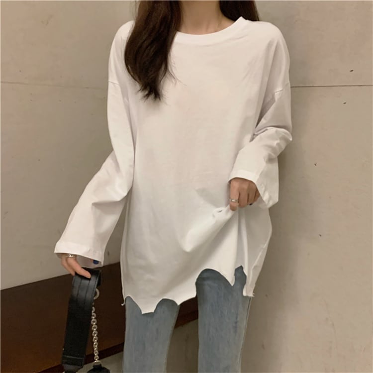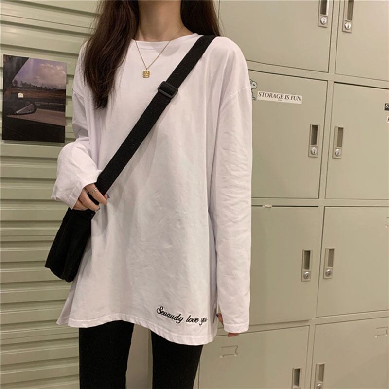 ホワイトボトミングTシャツ2021年春秋新作センスシックスウィートクールホール怠惰な長袖トップス婦人服 ロング 大人ガーリー キュート カジュアル スプリング 春物 オータム 秋物 可可里25350387558