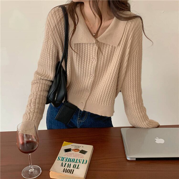 POLOカラーツイストニットセーター秋バージョン2021新しい薄切片スモールアウターウェア長袖カーディガンジャケットレディース ロング オータム 秋物 可可里86153193902