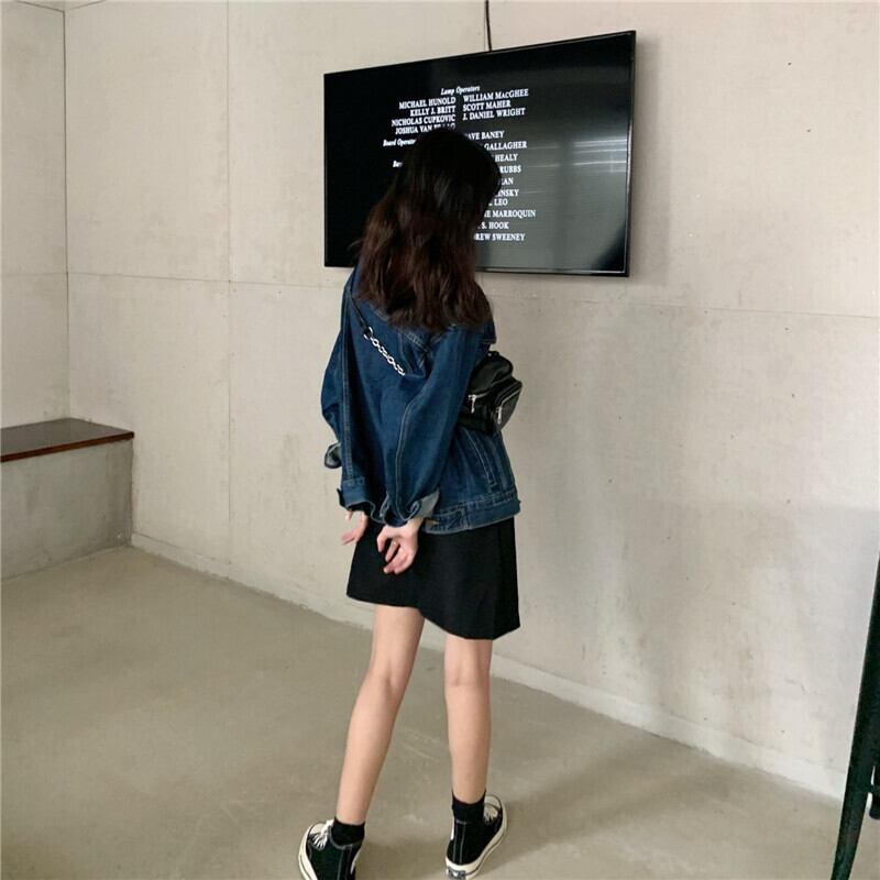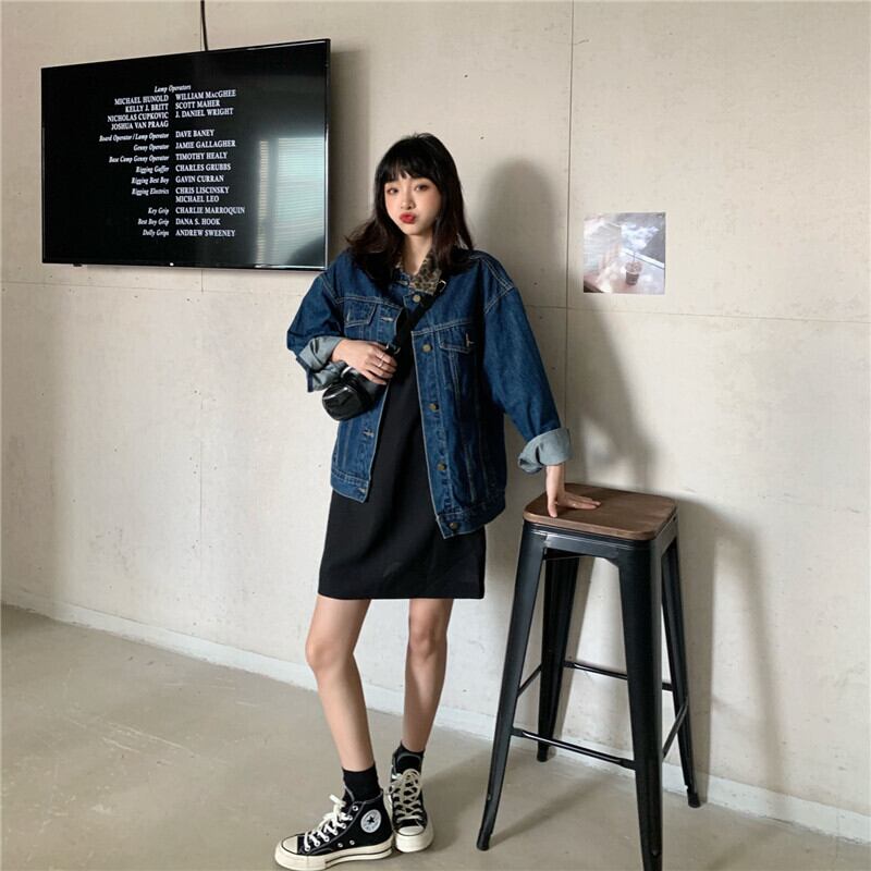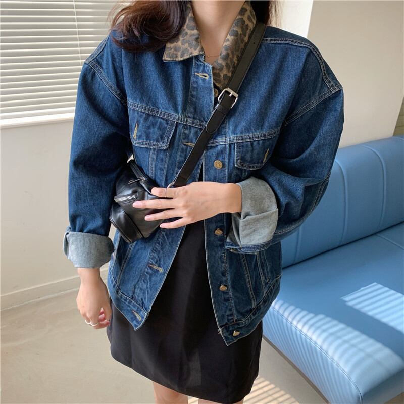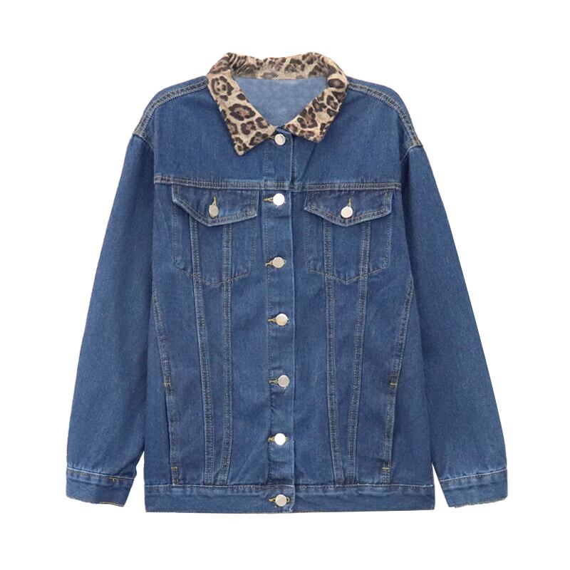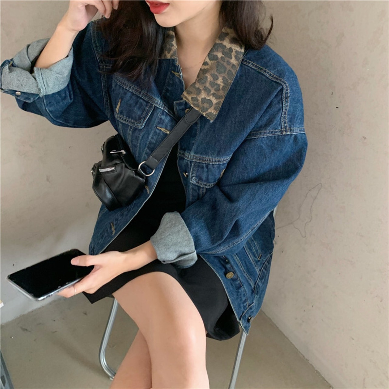 レディースニューデニムジャケット2021年秋レトロシックミドル丈長袖ストリートフライドストリートPOLOカラーヒョウトップ ロング オータム 秋物 可可里52316476287