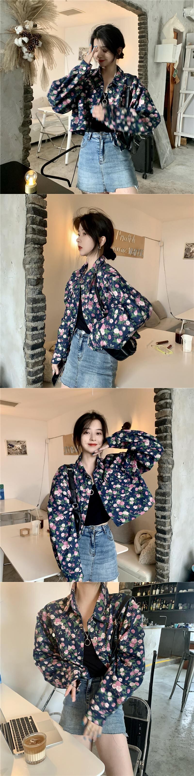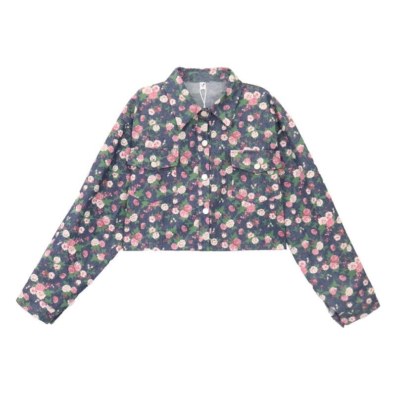 デニムジャケット女性デザインセンスレトロフローラルショートセクション2021年秋新しい甘くてクールなルーズ長袖トップイン ロング 大人ガーリー スウィート キュート カジュアル オータム 秋物 花柄 可可里60400579558