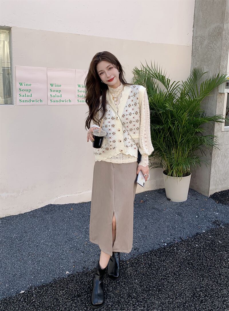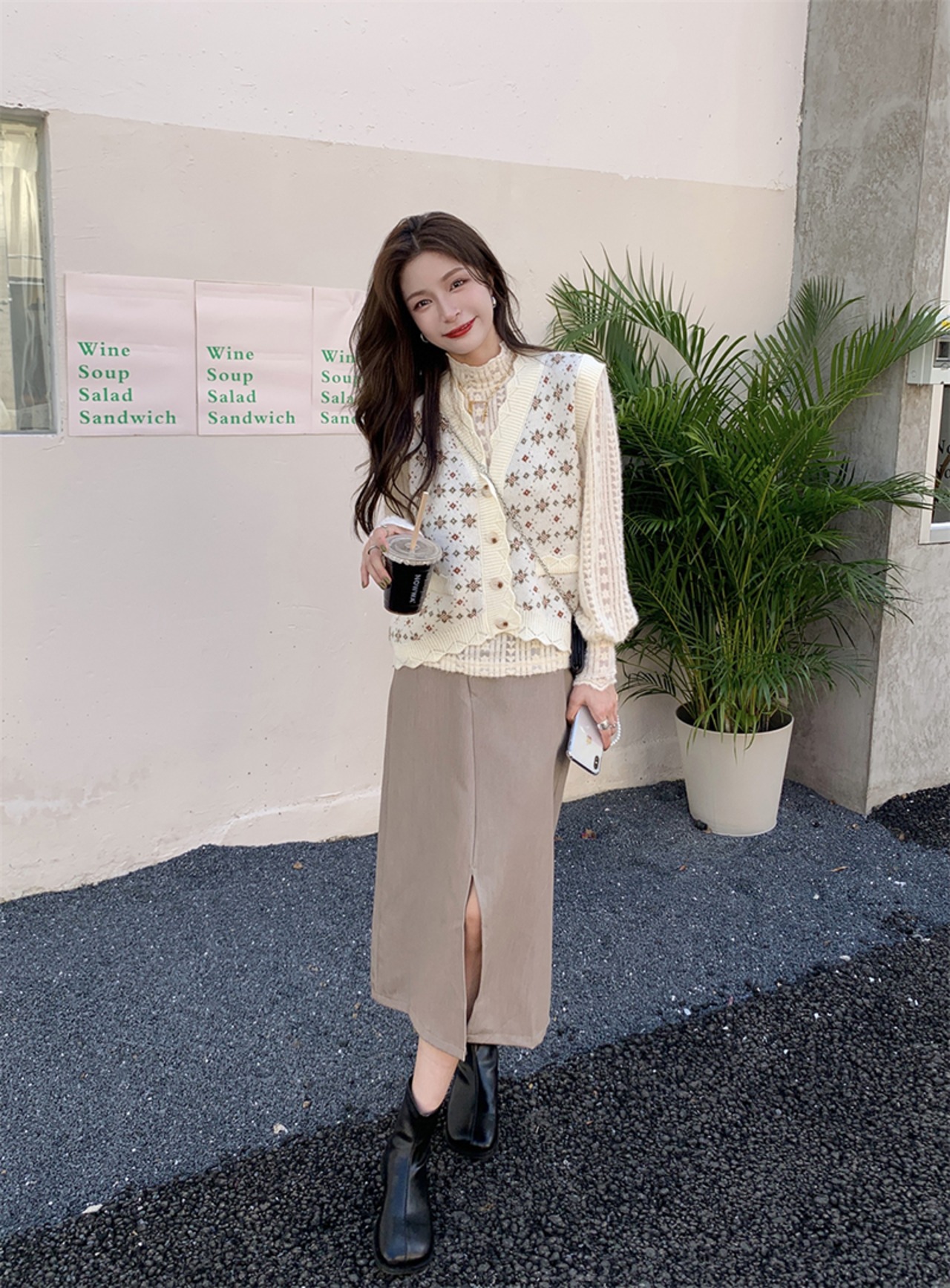 ニッチなデザインセンス初秋レディースVネックブラウスins2021新作長袖カレッジスタイル薄ニットセーターベスト ロング オータム 秋物 可可里9090788154