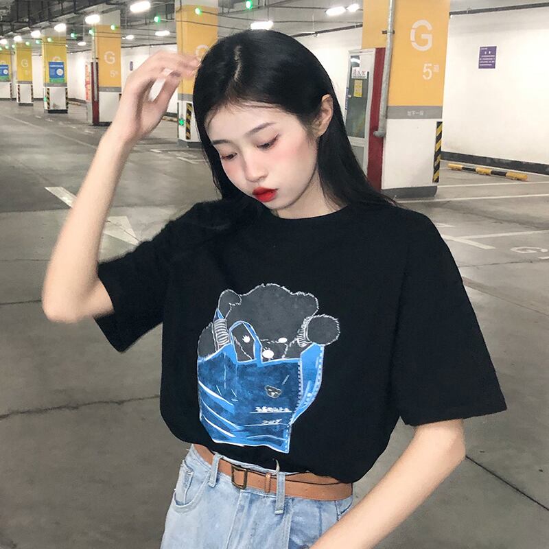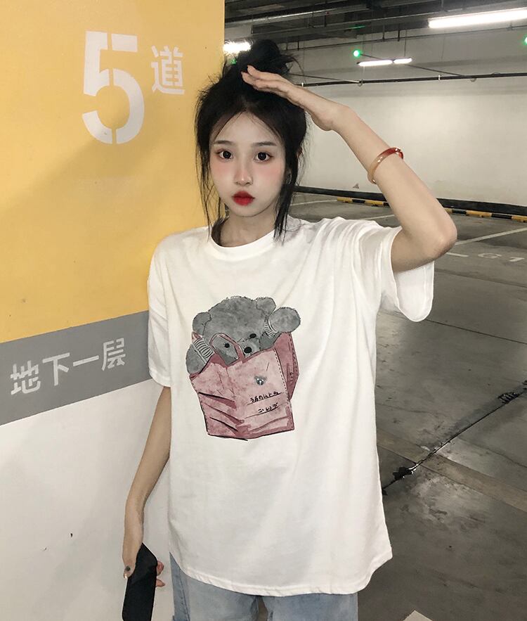 ベアTシャツ女性夏バージョン2021ニュープリントルーズワイルドヴィンテージセンス学生ワイルド半袖シャツ サマー 夏物 ビンテージ 可可里69516359426