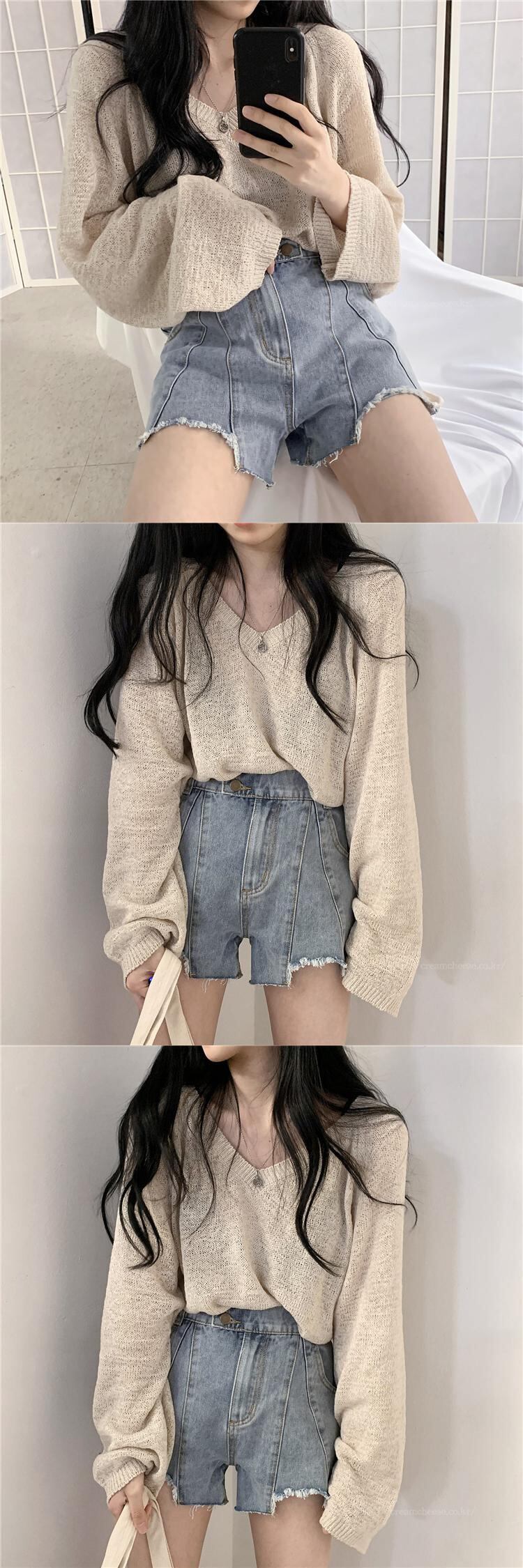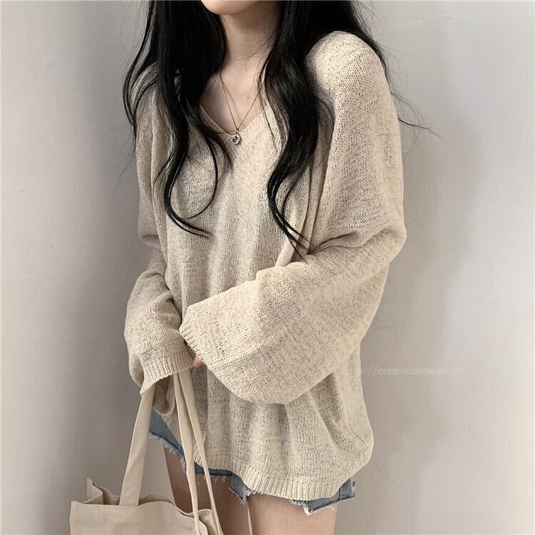 春バージョン2021新しい怠惰なスタイルのルーズVネック薄いアウターウェアヘッジ長袖セータートップ婦人服 ロング スプリング 春物 可可里51763892029