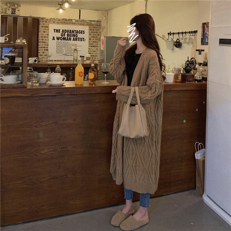 2021年秋バージョンシックなフレンチロングレイジーウィンドツイスト長袖セーターカーディガンジャケットレディース オータム 秋物 可可里69224951016