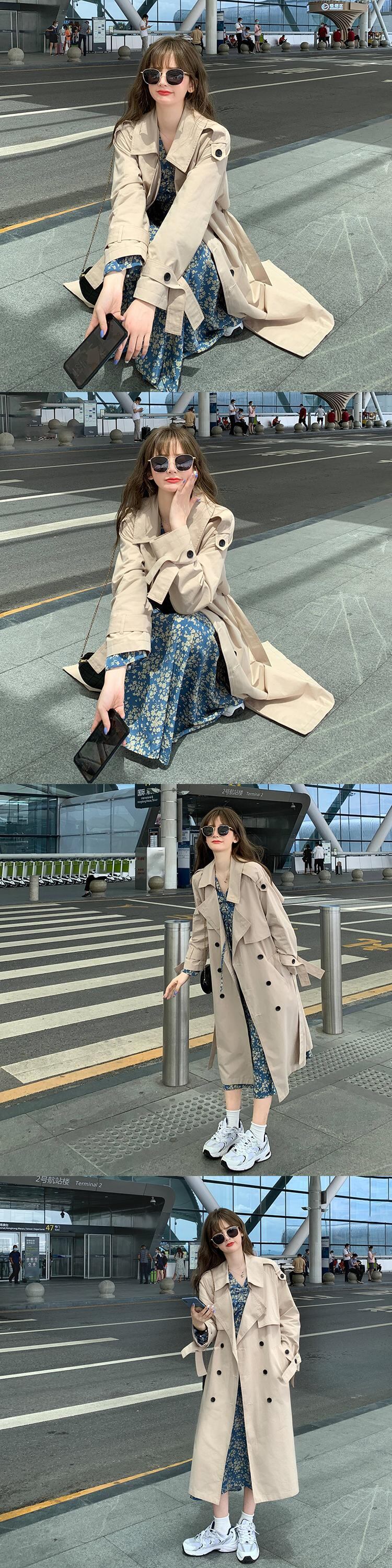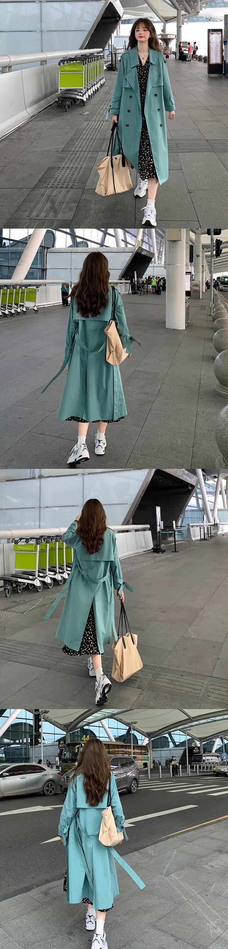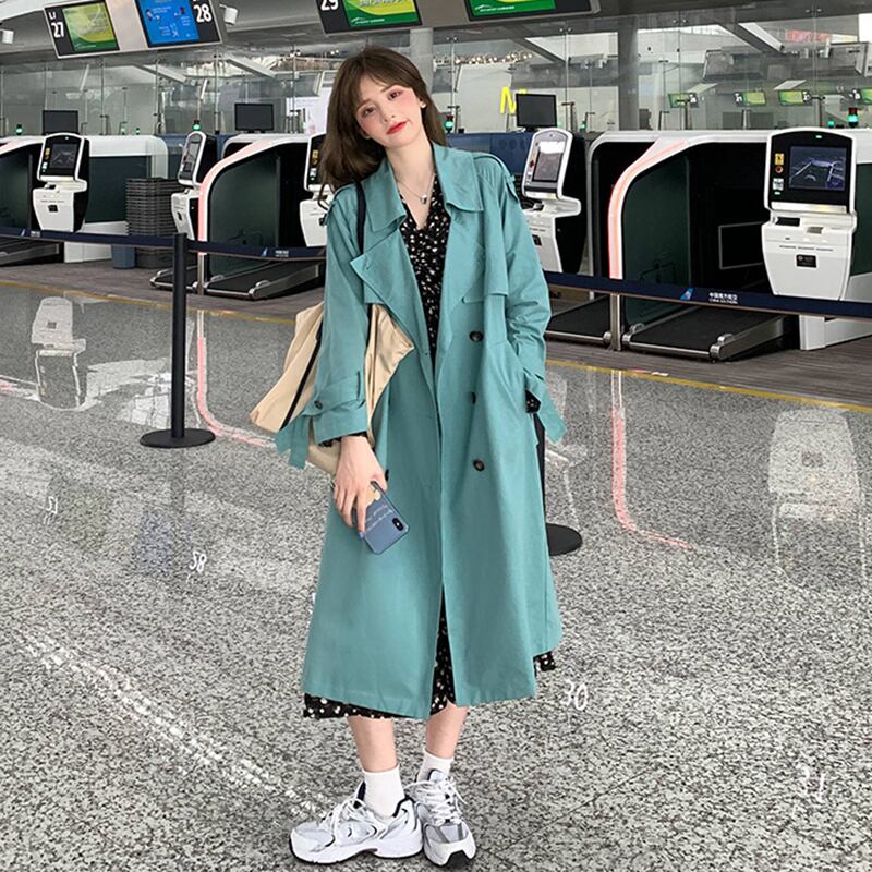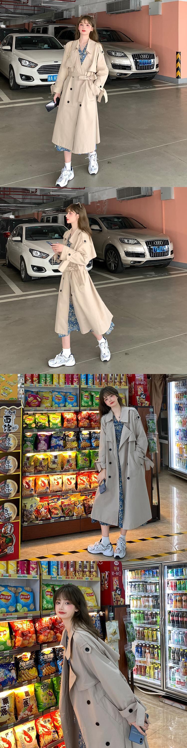 秋のバージョン2021新しいルーズファッション年齢削減英国スタイルの長いダブルブレスト長袖ウインドブレーカージャケットの女性 ロング オータム 秋物 可可里1480627704