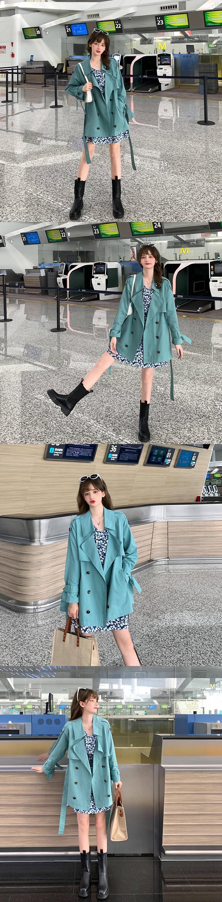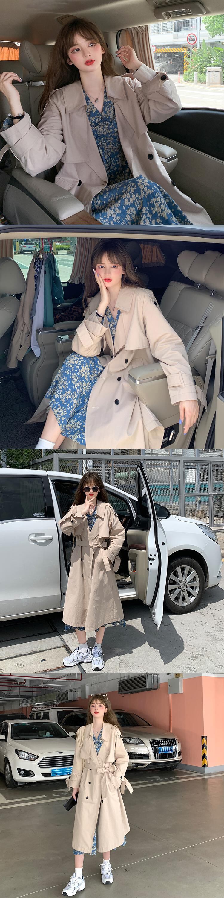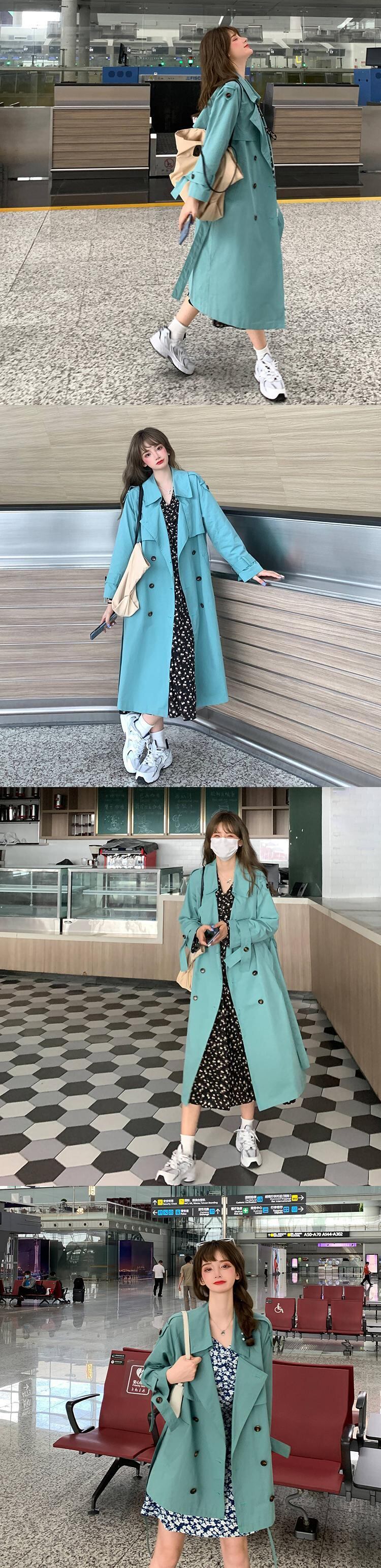秋のバージョン2021新しいルーズファッション年齢削減英国スタイルの長いダブルブレスト長袖ウインドブレーカージャケットの女性 ロング オータム 秋物 可可里1480627704