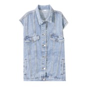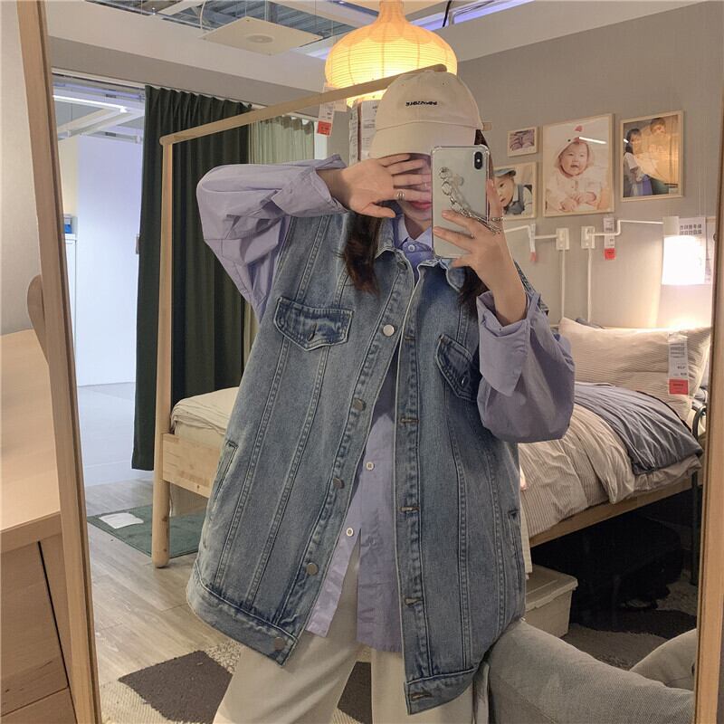 デニムベスト2021年春秋新作レトロ香港フレーバーBFウィンドルーズミドル丈アウターウェア学生ノースリーブジャケットメス スプリング 春物 オータム 秋物 可可里45765416128
