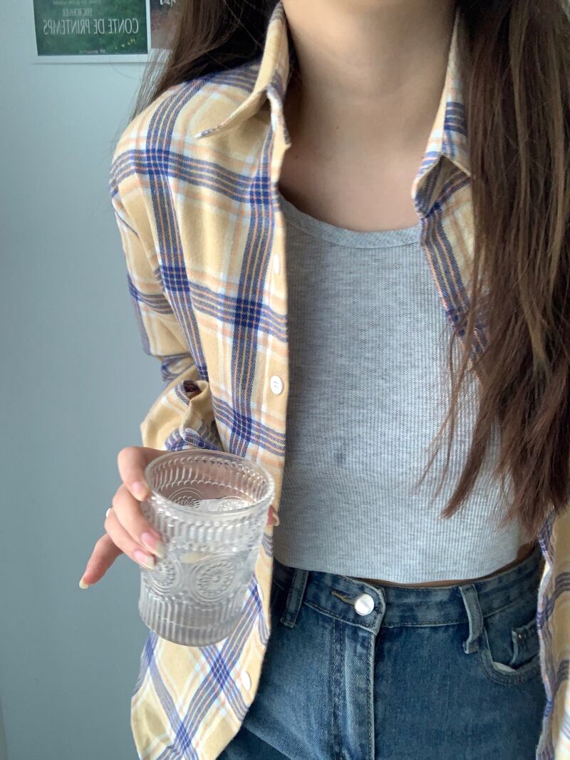 シャツ女性秋バージョン2021新塩デザインセンス起毛チェック柄カラーマッチングルーズ長袖ジャケット ロング オータム 秋物 可可里78484704756