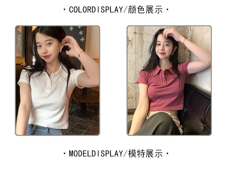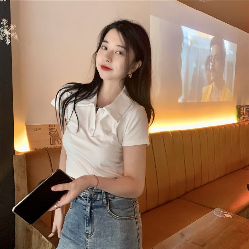 夏バージョン2021新しいスリムで薄い愛の刺繍ポロカラースタイルの半袖Tシャツトップ婦人服 サマー 夏物 可可里67024350998