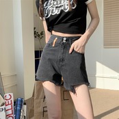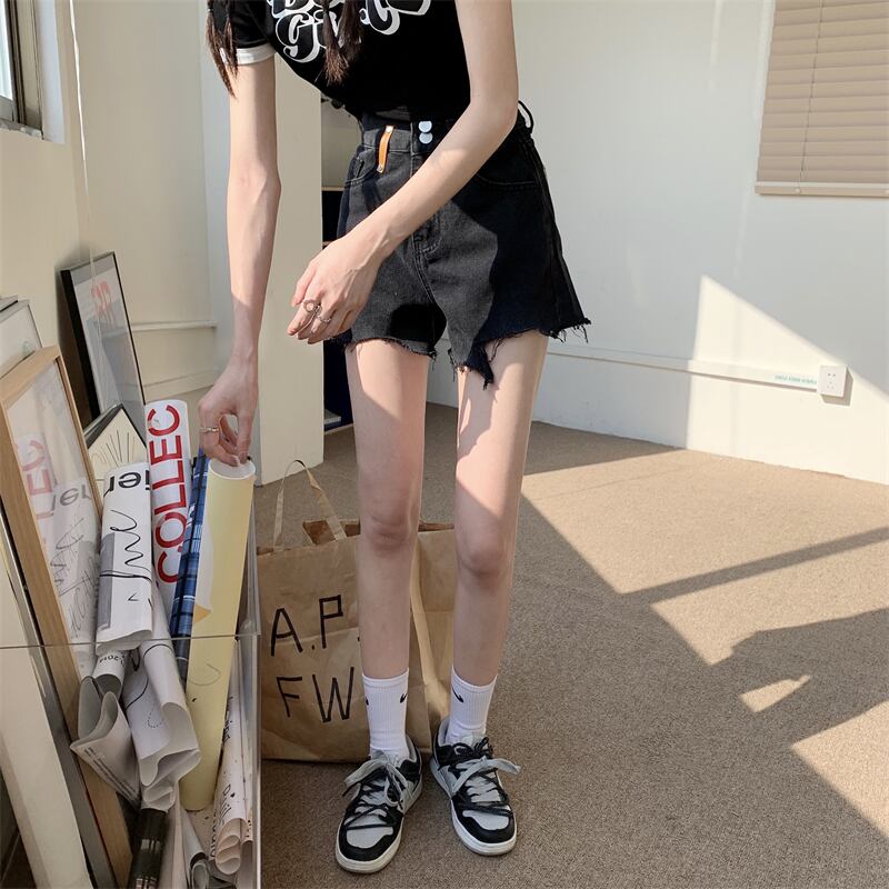 破れたデニムショーツ夏バージョン2021新しいデザインセンスステッチハイウエスト細い黒ワイドレッグパンツ女性 ハイウェスト ブラック サマー 夏物 ブルマー 可可里890189055