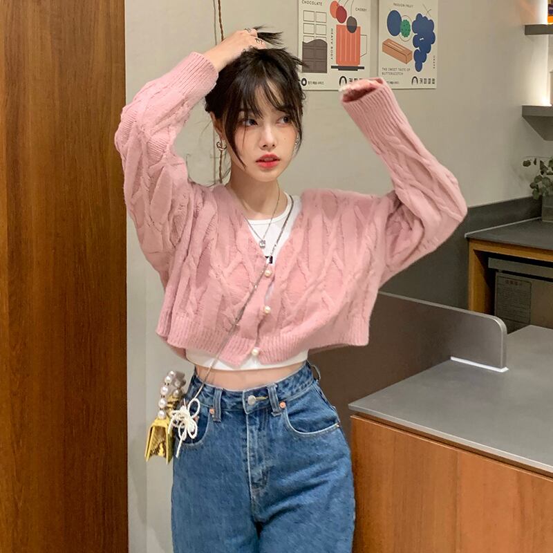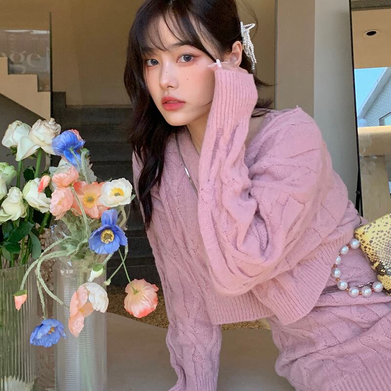 ピンクのセーターサスペンダースカートレディース初秋ニュースタイル2021アウター長袖カーディガンジャケットジャケットインツーピーススーツ ロング オータム 秋物 可可里67221677653