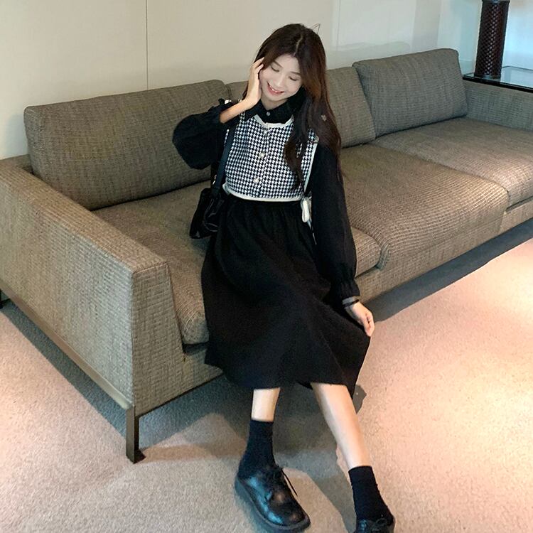 長袖ドレスレディース秋バージョン2021新しいハイウエストスリムファッション年齢を減らすミドル丈のキキョウスカート ロング オータム 秋物 可可里8161058480