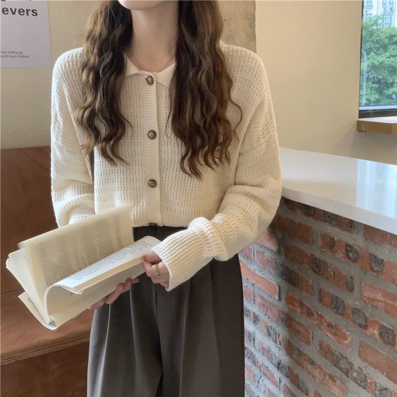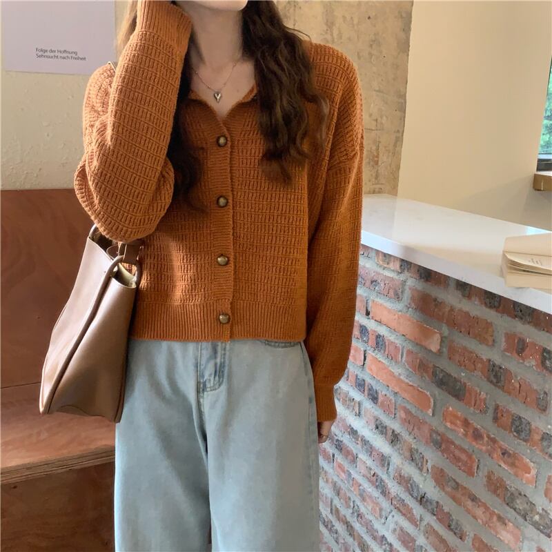 ニットセーターレディースデザインセンスラペルルーズショートスタイル2021年秋新作レトロ香港スタイルアウターウェア長袖トップス ロング オータム 秋物 可可里39135597153