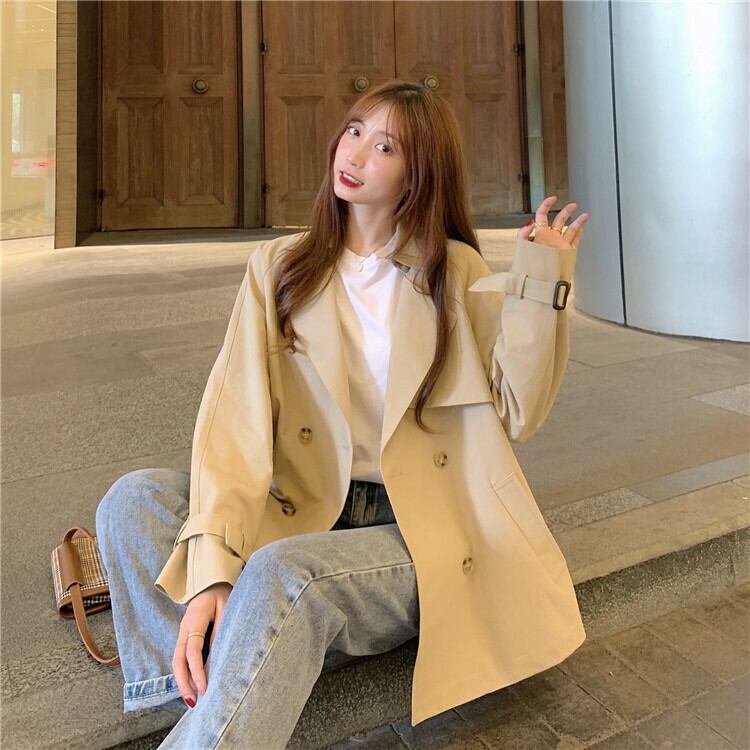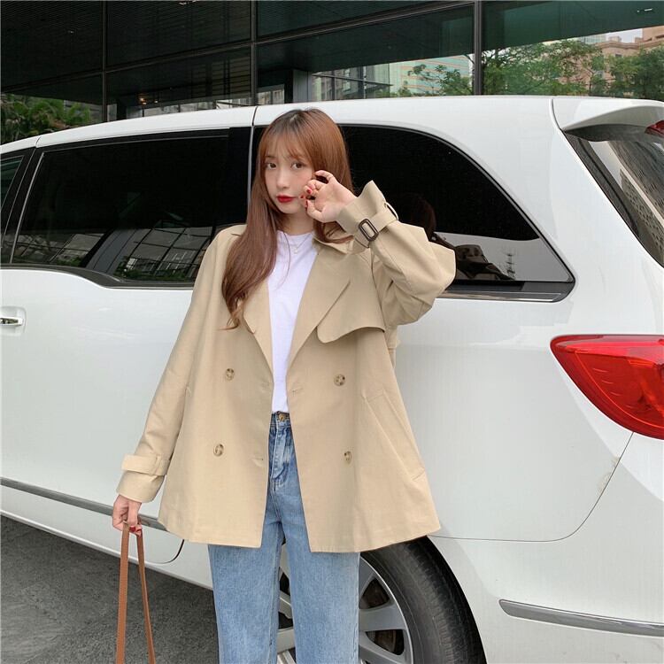 カーキウインドブレーカージャケット2021年秋新しいブリティッシュスタイルのデザインダブルブレストの薄い長袖トップ婦人服 ロング オータム 秋物 可可里35724474283