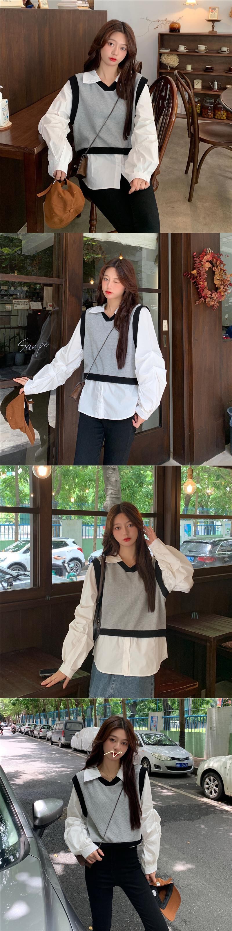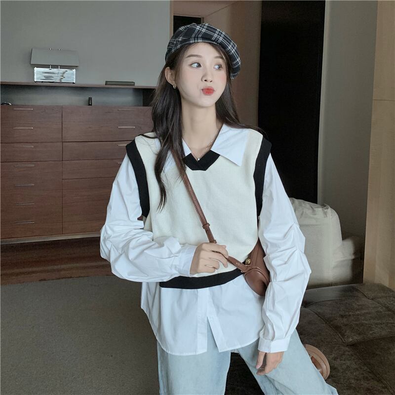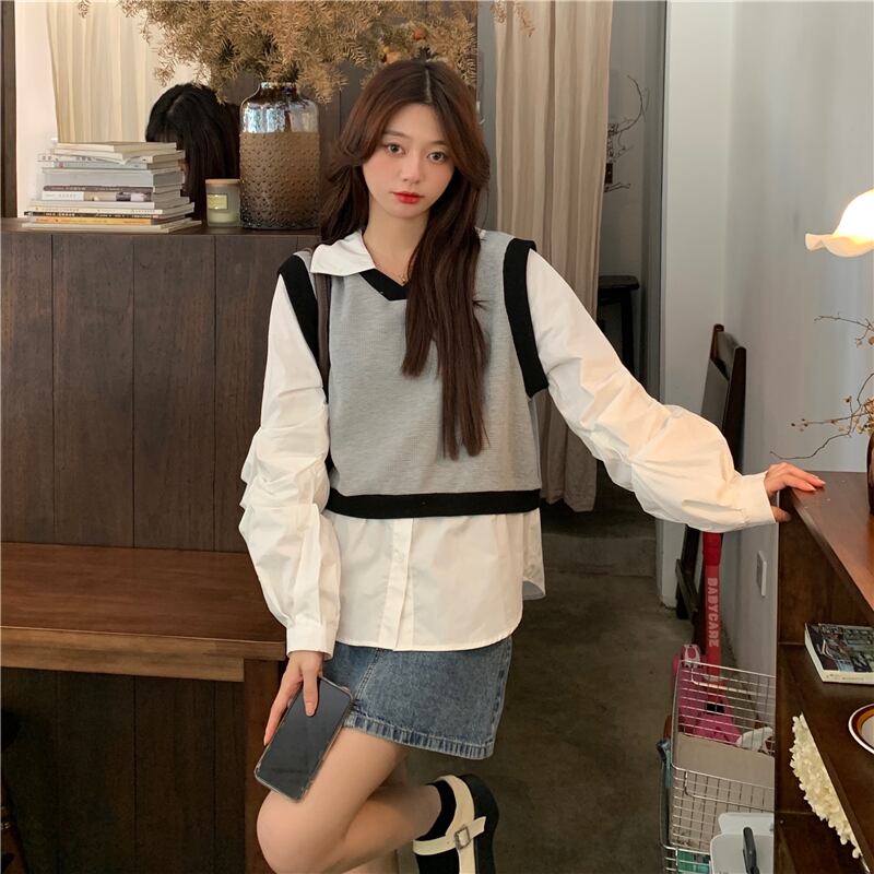 フランスのインズ女性の甘くてシックな長袖シャツ2021年初春と秋新しいシャツのデザインセンスニッチフェイクツーピース ロング 大人ガーリー スウィート キュート カジュアル スプリング 春物 オータム 秋物 可可里6200113204