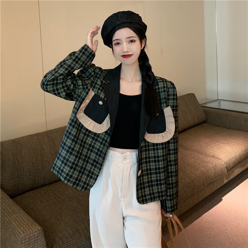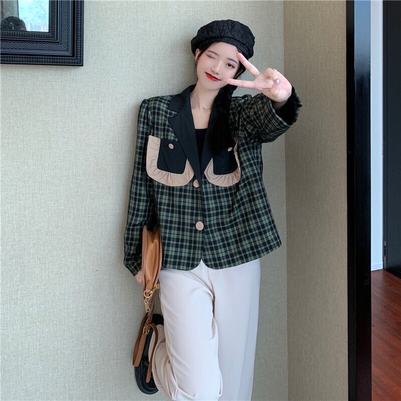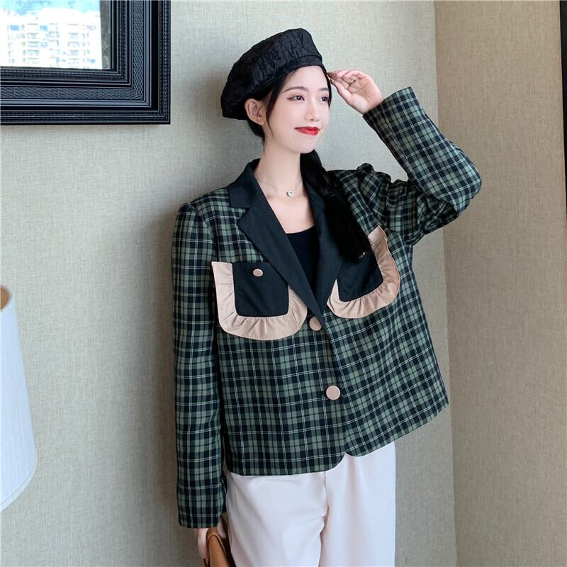 スモールフレグランスジャケット女性デザインセンスニッチ初秋スーツ2021新しいスモールチェック柄スーツジャケット春秋 スプリング 春物 オータム 秋物 可可里44000934954