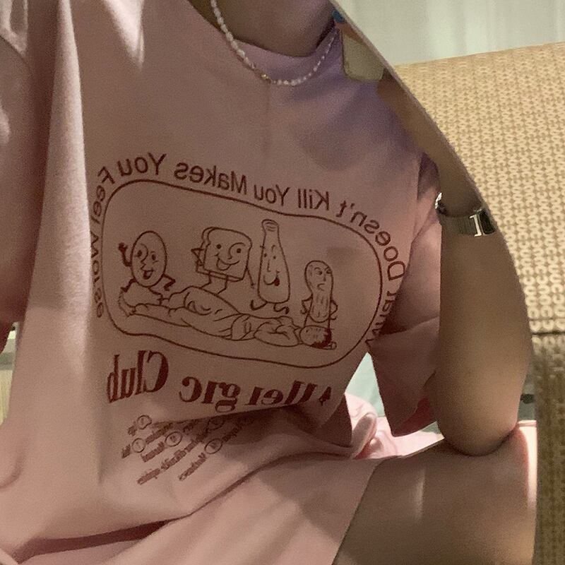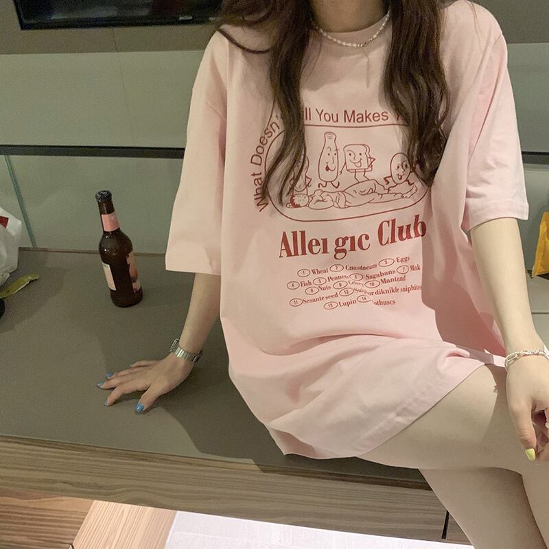 Tシャツレディース2021年夏新作ルーズラージサイズ半袖ボトムスが消えるスウィートピンクトップス潮 大きめサイズ 大人ガーリー キュート カジュアル サマー 夏物 可可里52662378297