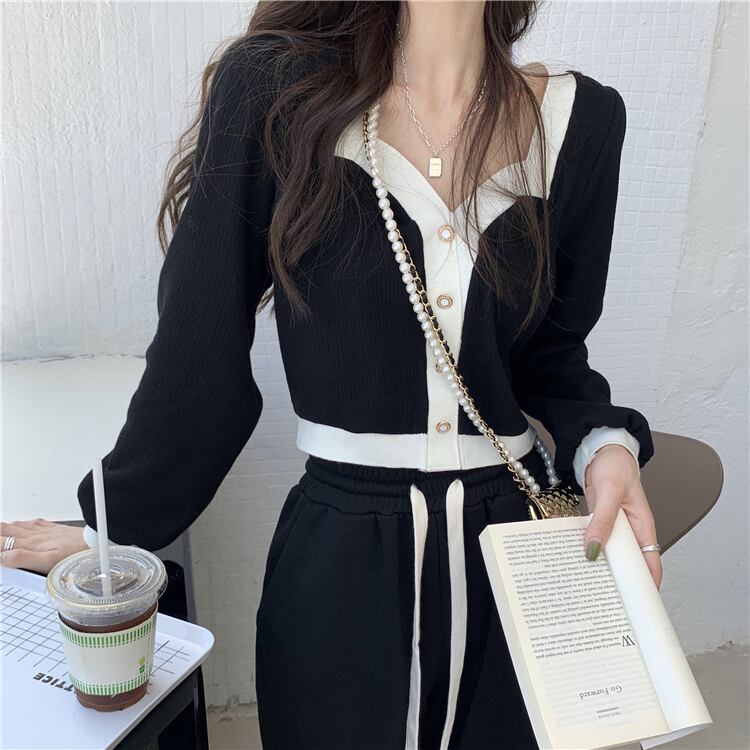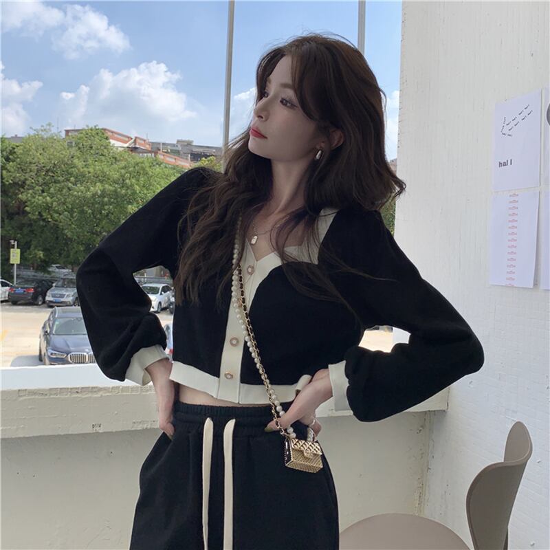 2021年初秋新作トップスショートショートニットセーターデザインセンス長袖ニッチシック春秋婦人服トレンド ロング スプリング 春物 オータム 秋物 可可里85105106404
