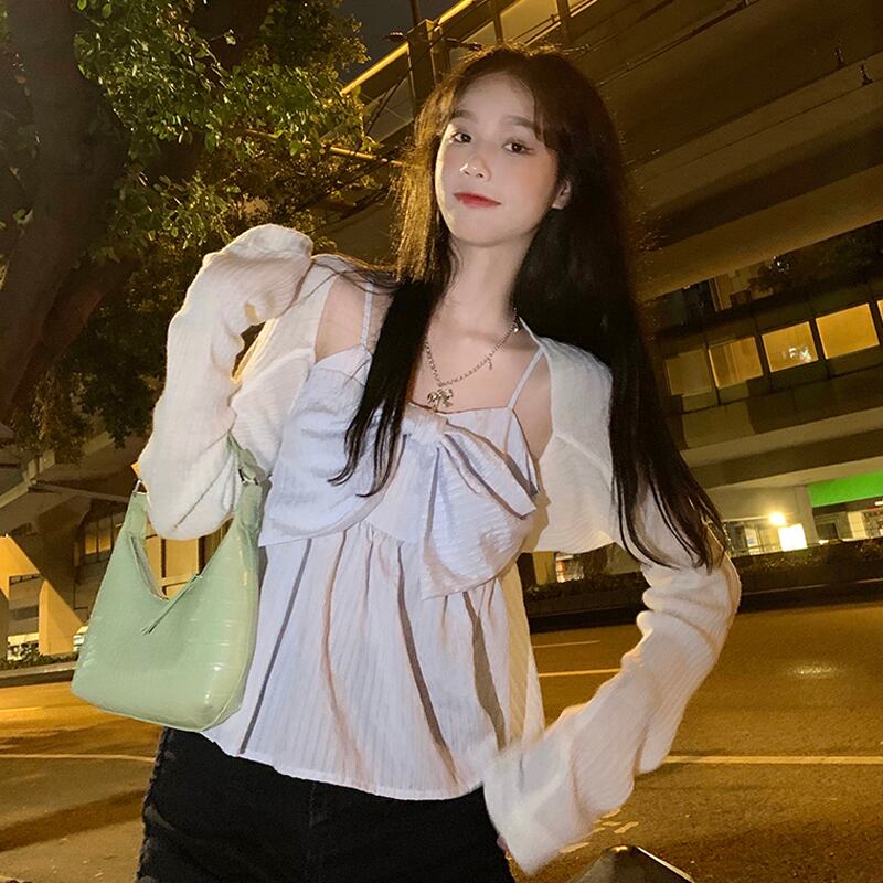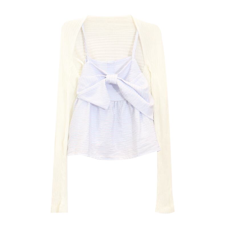 アウターウェアサスペンダー2021年夏新しい甘いデザインセンス蝶結び少しかわいい年齢を減らすベストトップの女性 リボン 大人ガーリー スウィート キュート カジュアル サマー 夏物 可可里90245535494