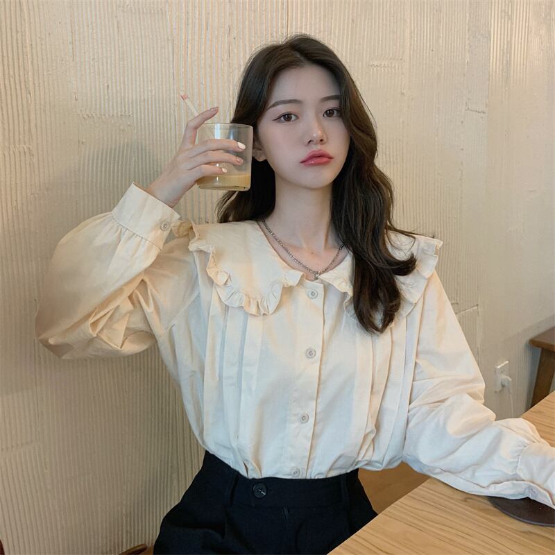 ドールカラーシャツ2021年秋新作スウィートフレンチスタイルデザインセンスニッチウェア長袖ブラウス婦人服 ロング 大人ガーリー キュート カジュアル オータム 秋物 可可里43464980811