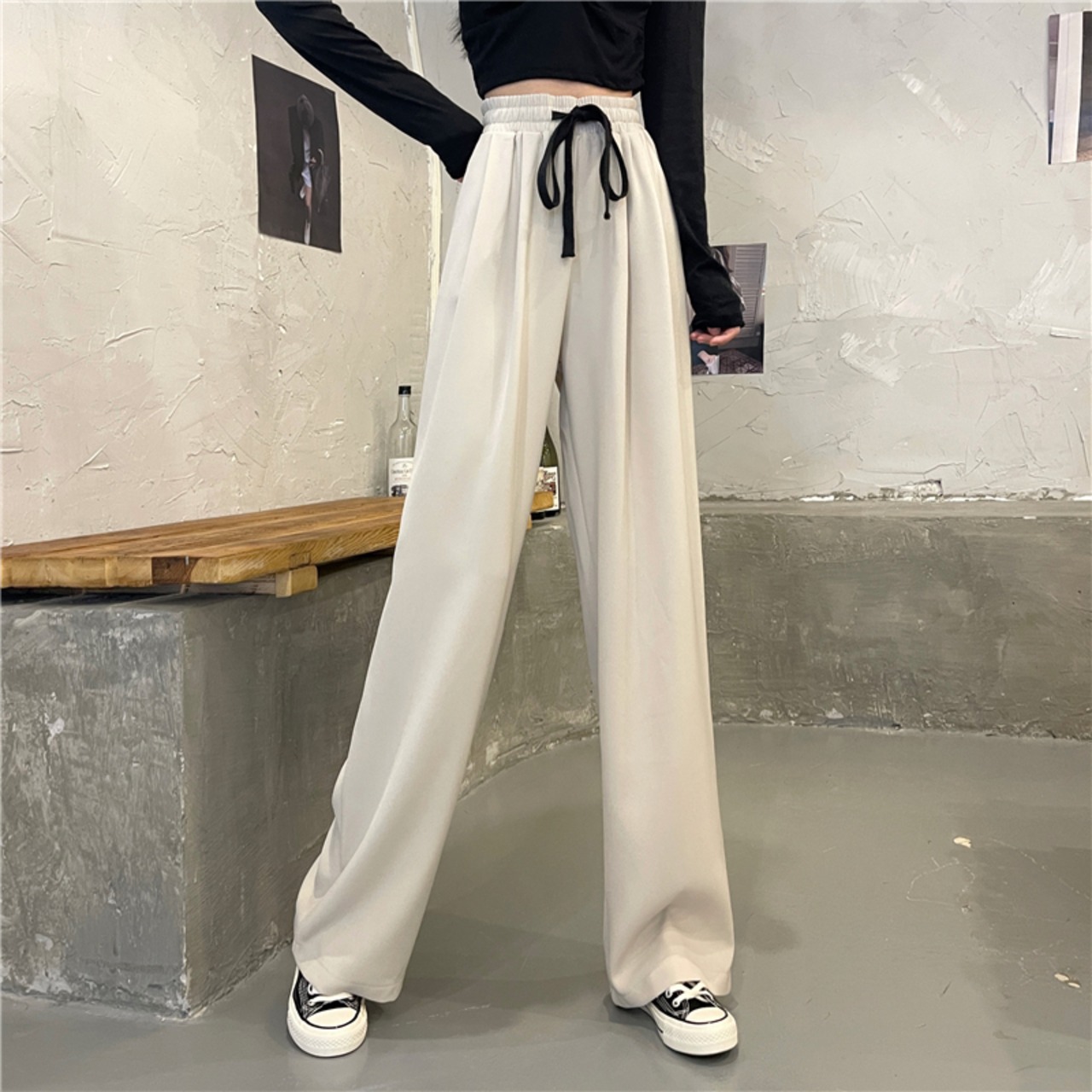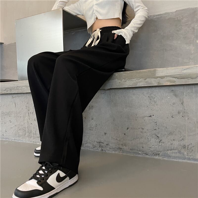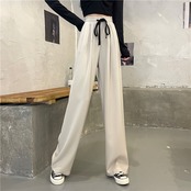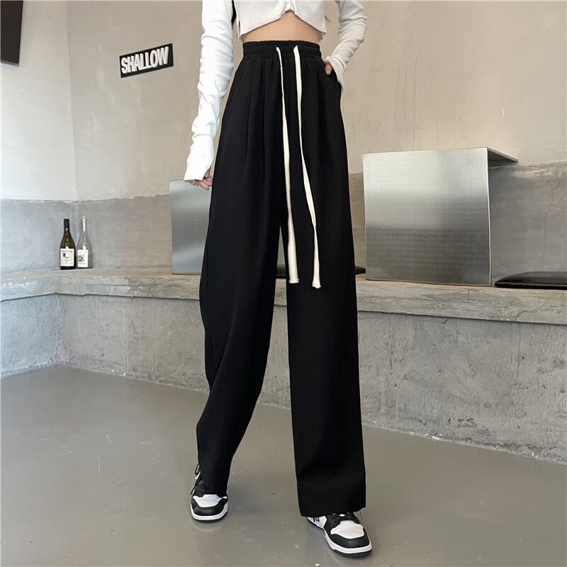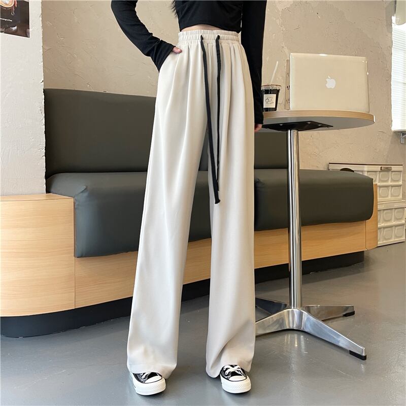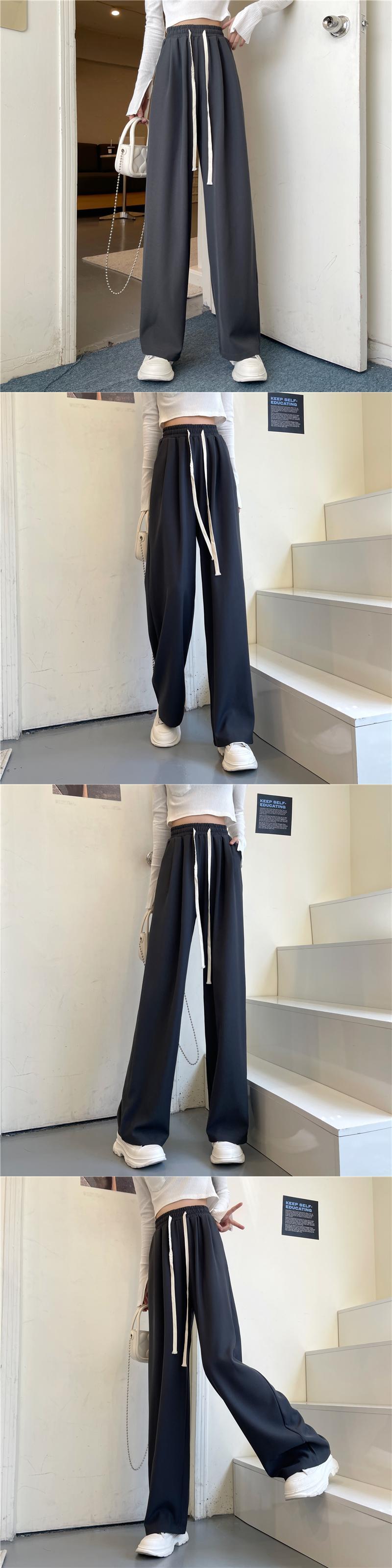 パンツレディース秋冬厚みのあるワイドレッグパンツ2021年新作ドレープハイウエストドローストリングパンツ春秋カジュアルパンツ ハイウェスト スプリング 春物 オータム 秋物 ウィンター 冬物 可可里93696770361