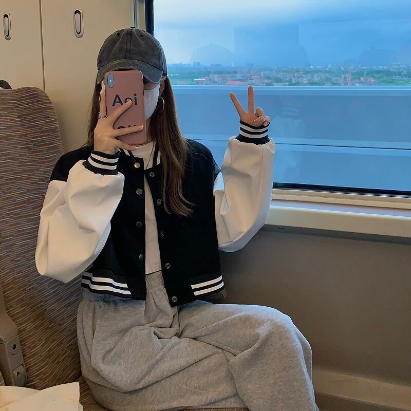 秋のバージョン2021新しいルーズファッション年齢削減ワイルドショート野球ユニム長袖シングルブレストジャケット女性 ロング オータム 秋物 可可里39076024562