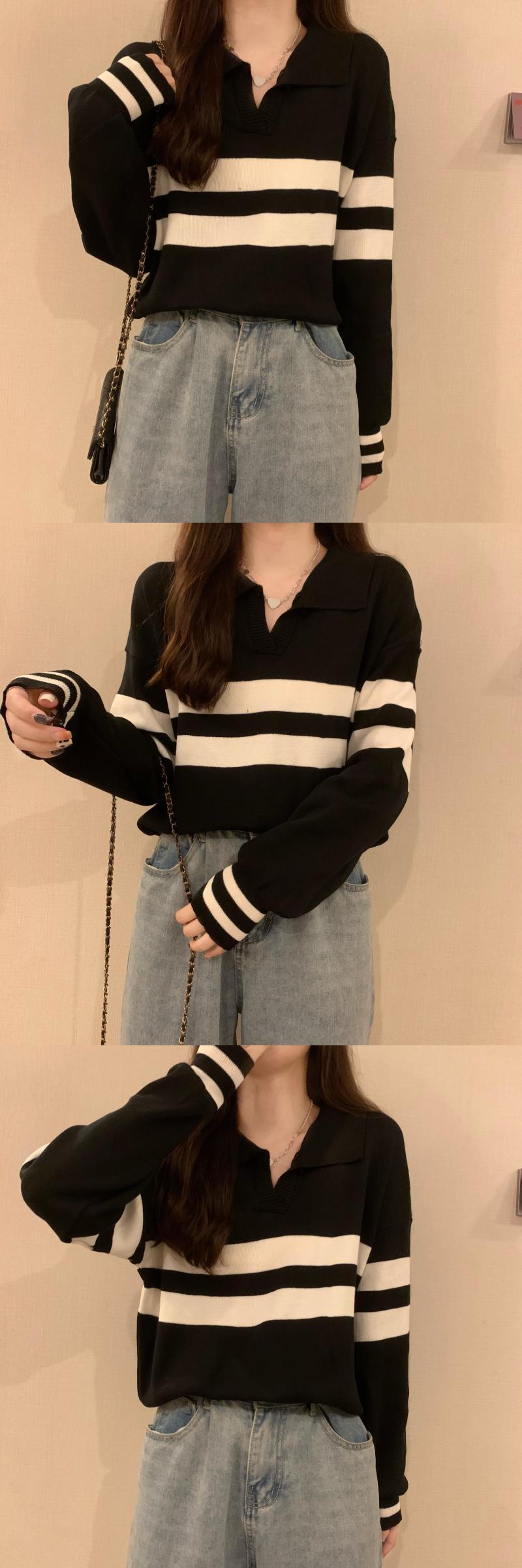 ストライプニットセーターコート女性春秋冬2021新しい野生の長袖ポロカラーセーターinstide ロング スプリング 春物 オータム 秋物 ウィンター 冬物 可可里35014695701