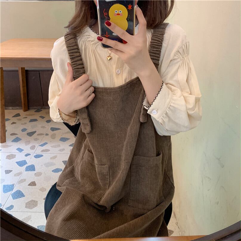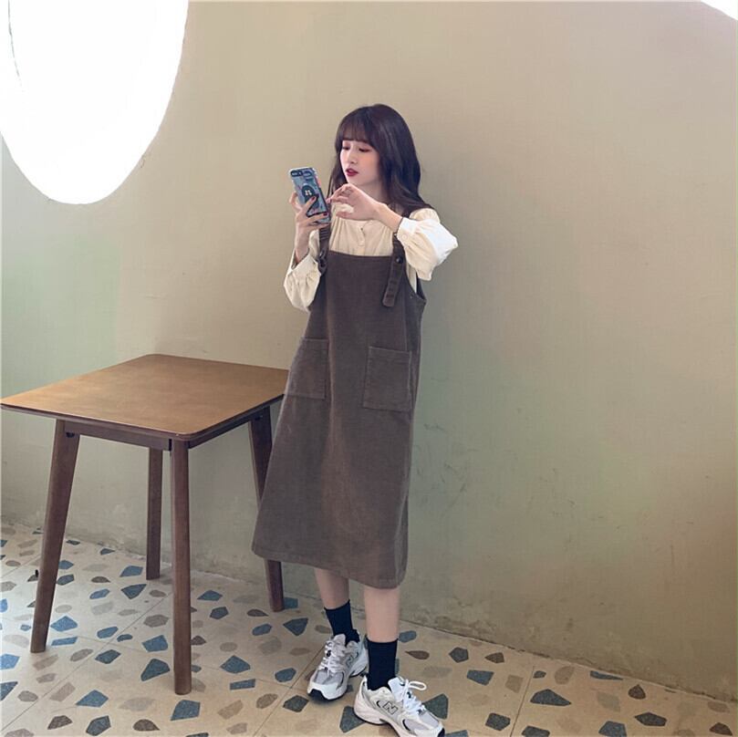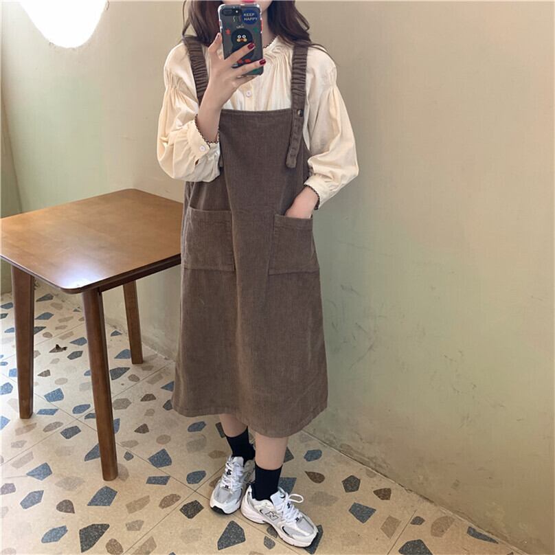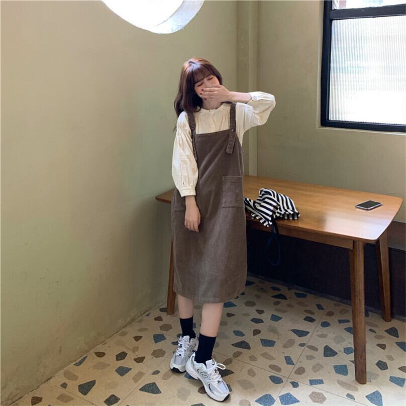 2021年春秋新作レトロツーリングミドル丈バックスプリットルーズルーズカバーミートエイジリダクションストラップドレスメススカート スプリング 春物 オータム 秋物 可可里82630387599