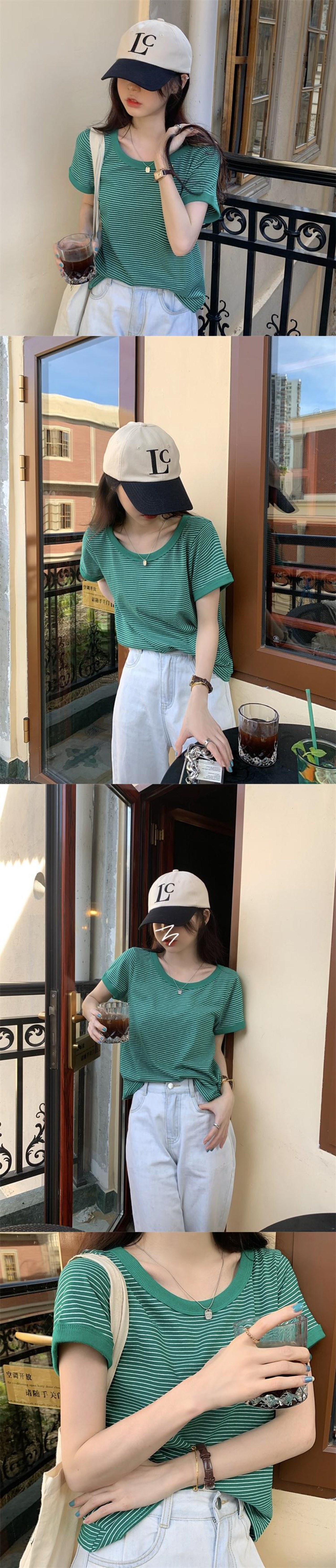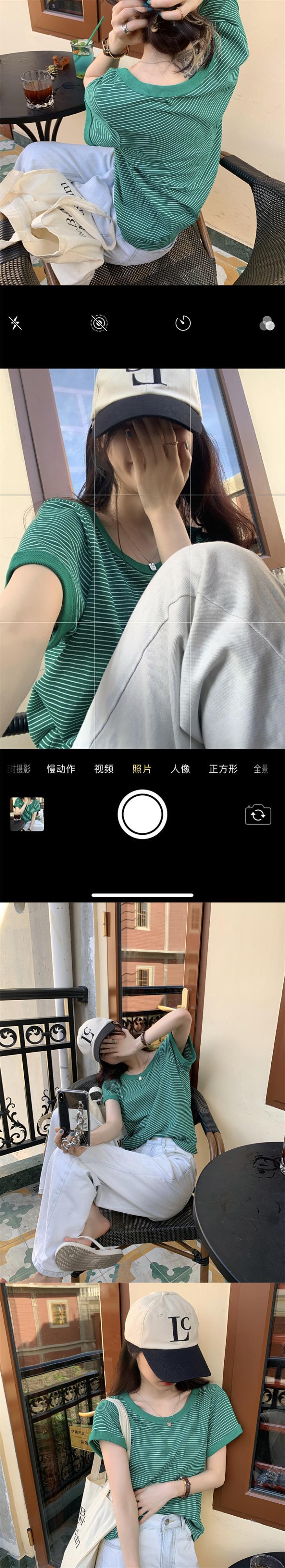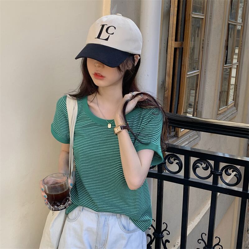 Tシャツ半袖スウィートクールストライプ2021年夏新作レトロ香港スタイルスモールヒットカラーソルトブラウス女性インタイド 大人ガーリー キュート カジュアル サマー 夏物 可可里41291141587