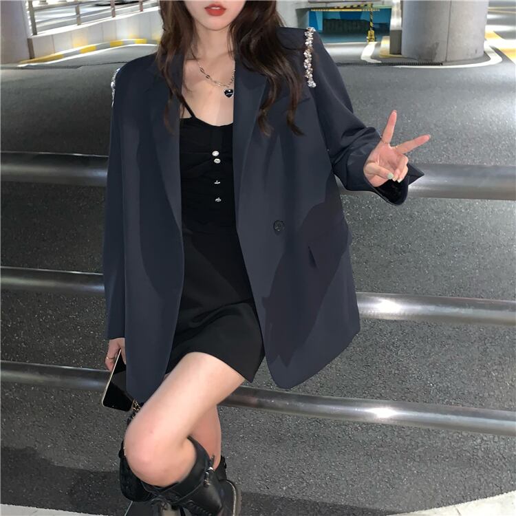 レディーススーツジャケットスタイルのデザイン、優しい着こなし、初秋の気質2021新しいニッチシックなラージサイズのスーツ 大きめサイズ オータム 秋物 可可里14645776183