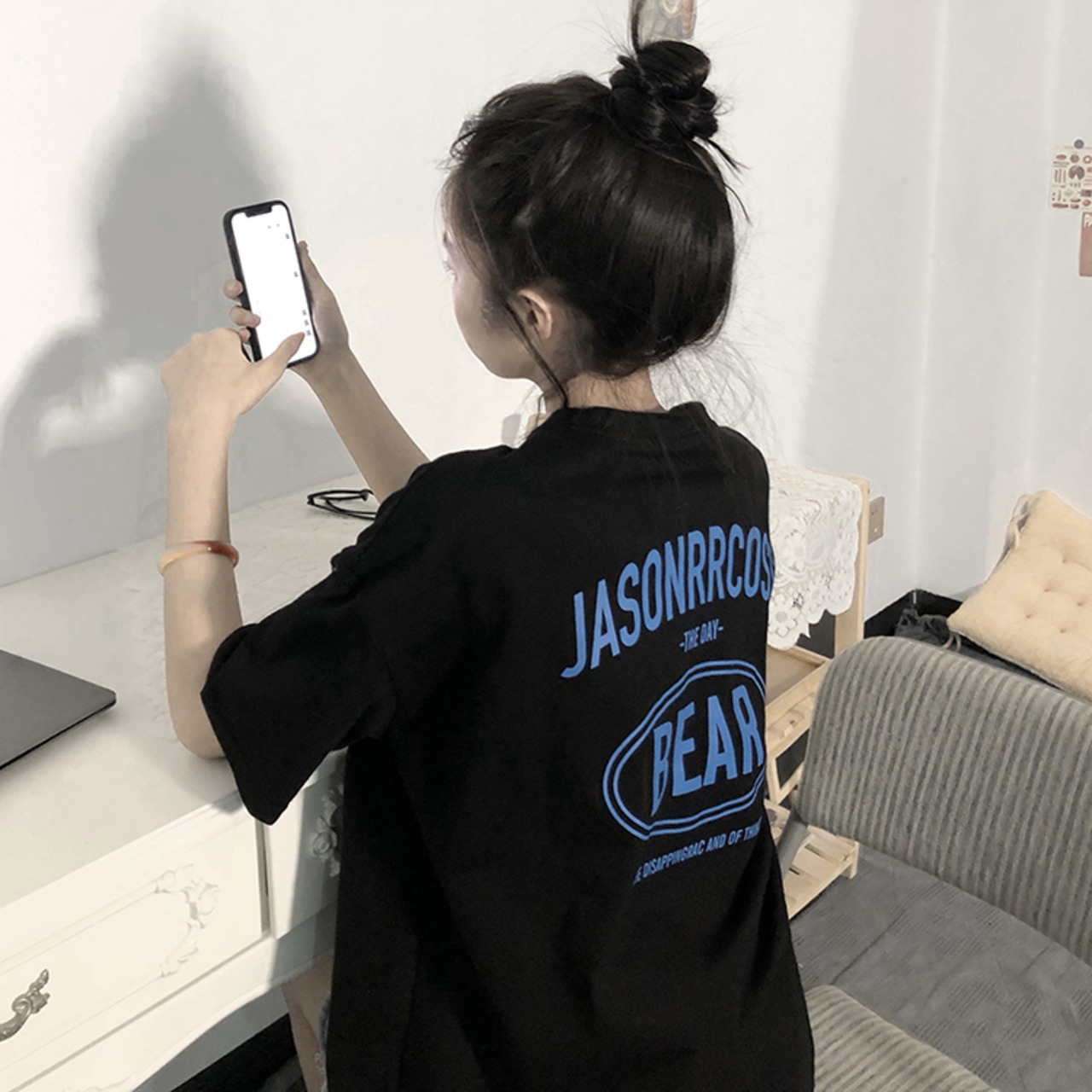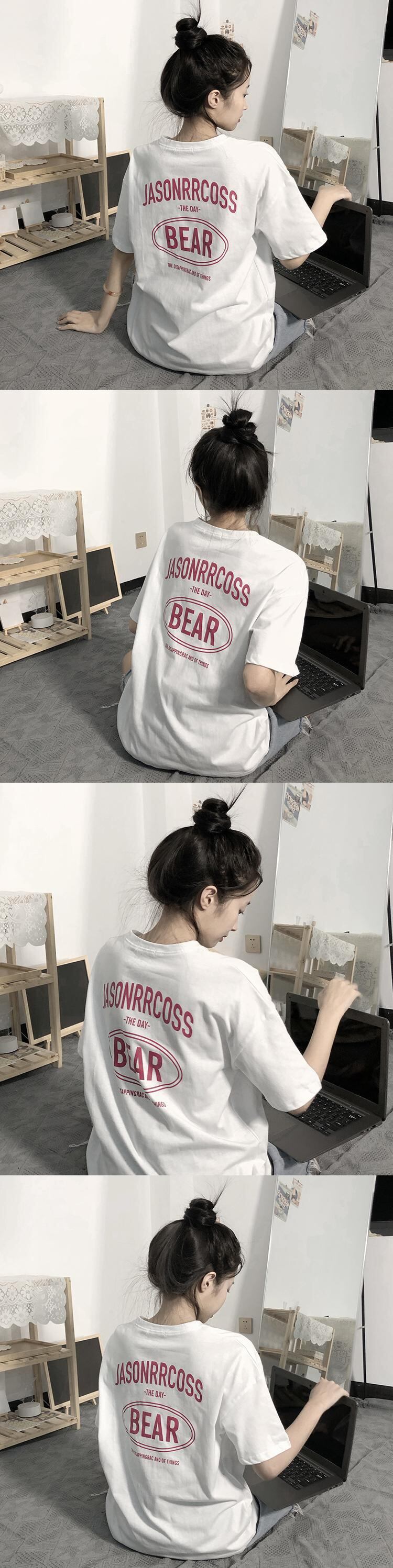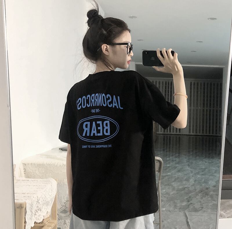 夏バージョン2021新しいファッションシックなフランスの年齢を減らす個性バックレター印刷半袖Tシャツ女性の潮 サマー 夏物 可可里4855927697