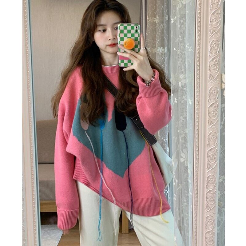 プルオーバーアウターセーター2021年秋新しい甘い刺繍ラブレターデザインセンスニット長袖ブラウス女性 ロング レッド 大人ガーリー スウィート キュート カジュアル オータム 秋物 可可里13172967013