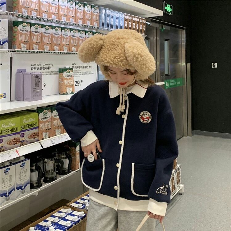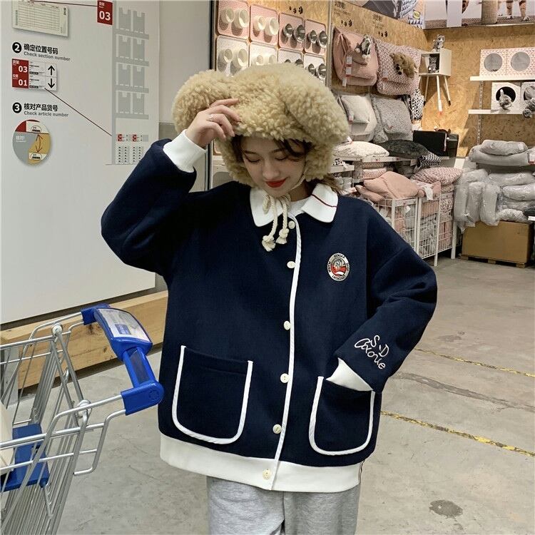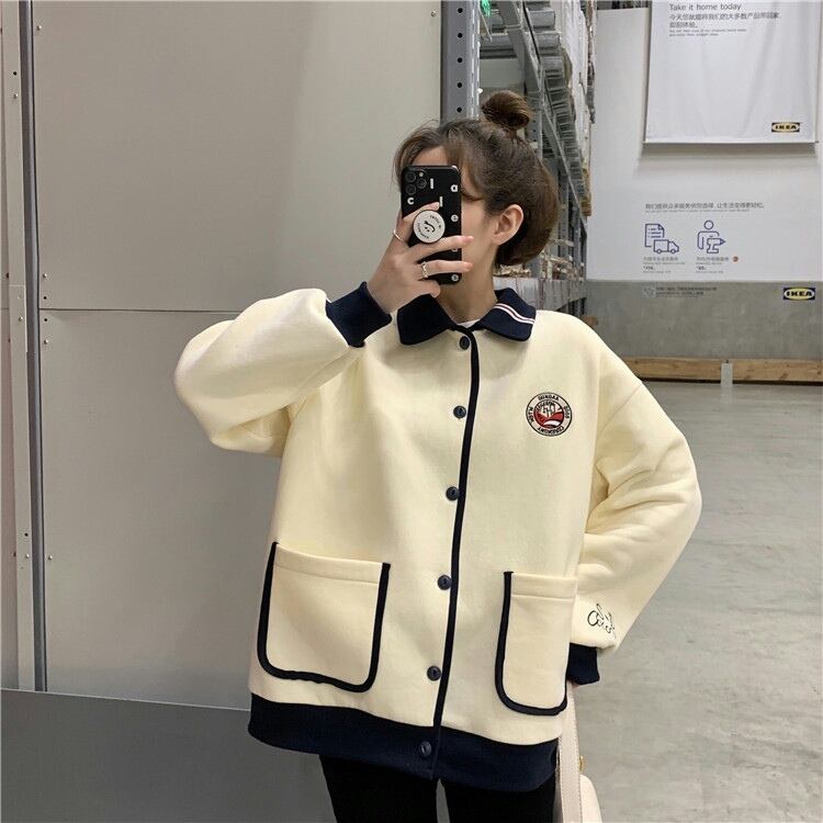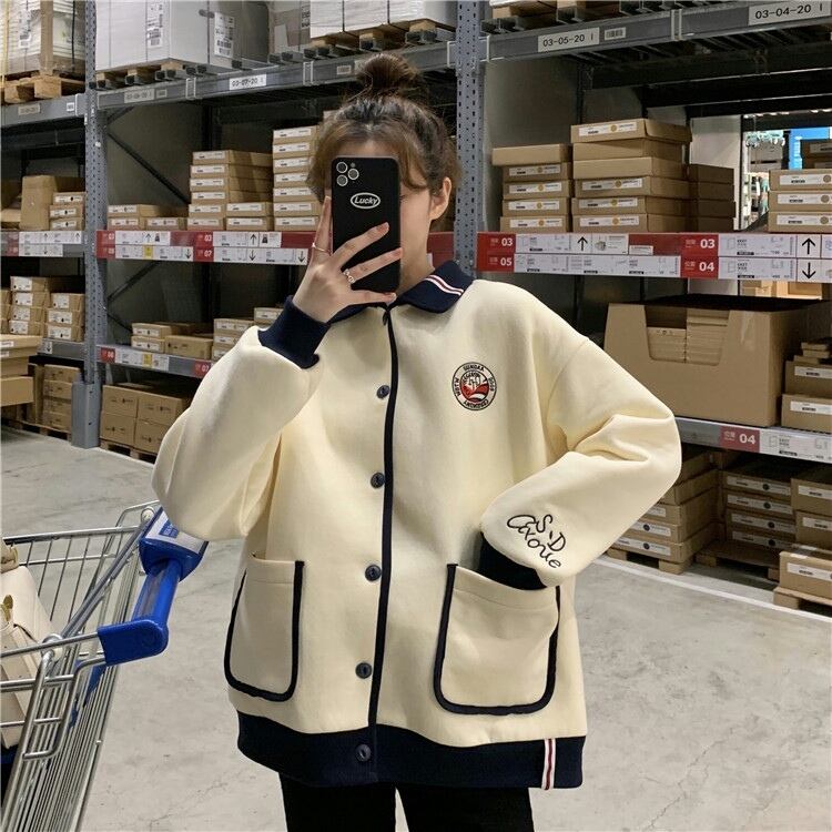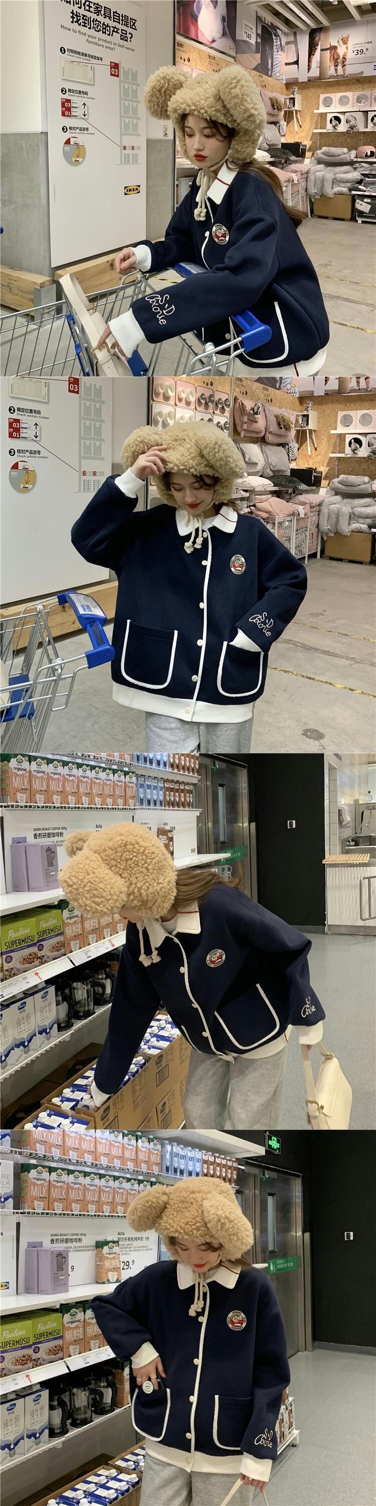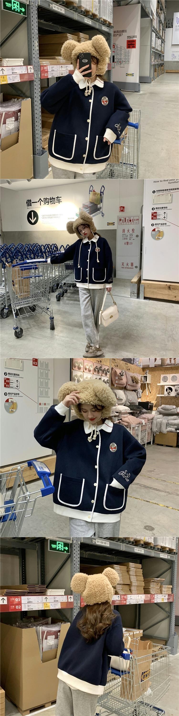 スタイルジャケットコート2021年秋新刺繍マイクロチャプターコントラストカラールーズデザインセンススウィートブラウス婦人服 大人ガーリー キュート カジュアル オータム 秋物 可可里37713340780