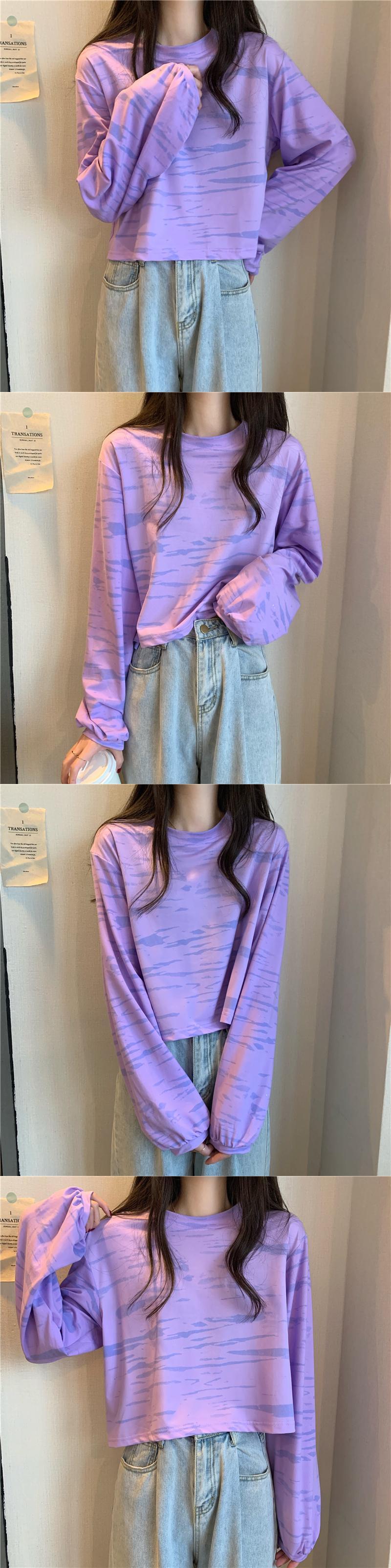 ショート長袖トップスボトミングシャツ女性の2021年春秋新作ルーズリトル絞り染めネットレッドTシャツインスタイド ロング スプリング 春物 オータム 秋物 可可里89977622364