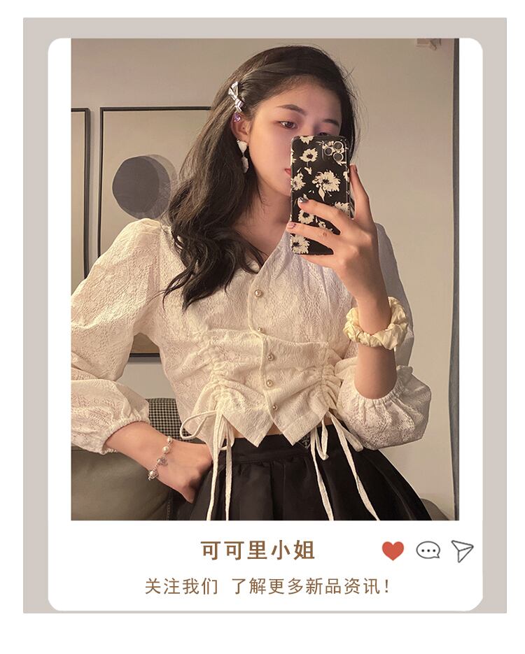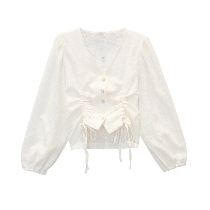ショートVネックブラウス女性デザインセンスニッチ2021新春夏新作ドローストリングスウィートスパイシースタイルシャツインタイド 大人ガーリー キュート カジュアル スプリング 春物 サマー 夏物 可可里54631763393