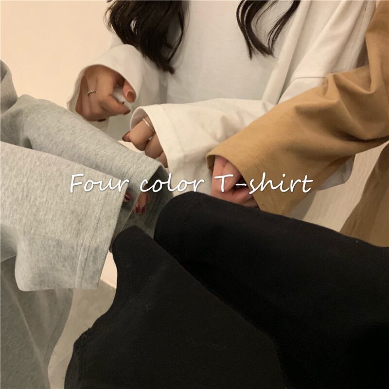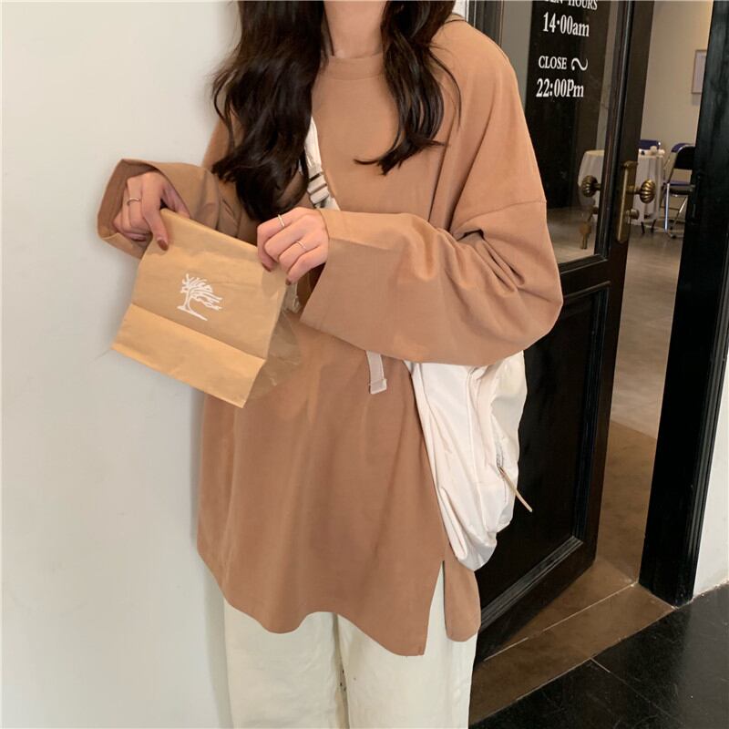 ルーズオールマッチ長袖Tシャツ2021年秋新作ルーズミドル丈ホワイトスリットショートブラウス婦人服 ロング オータム 秋物 可可里41409939827