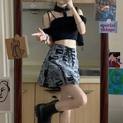 夏バージョン2021新しいハイウエストスリミングファッション年齢削減オールマッチプリントスカートスカートレディーストレンディスカート ハイウェスト サマー 夏物 可可里48088742131