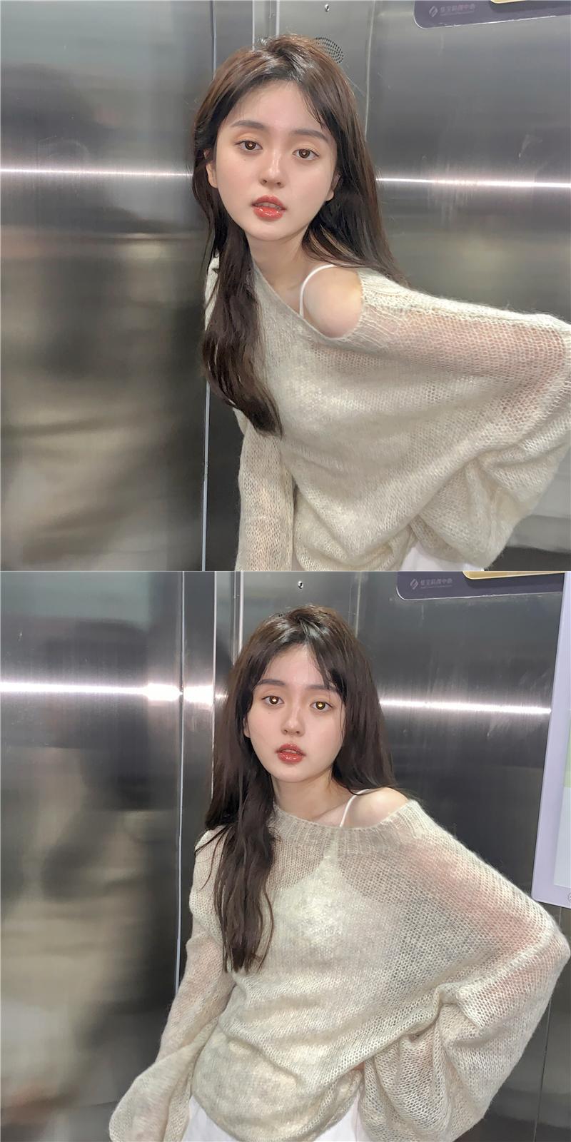 日焼け止めニットレディース秋バージョン2021モヘア中空薄切片ルーズレイジー長袖ブラウス ロング オータム 秋物 可可里8396002307