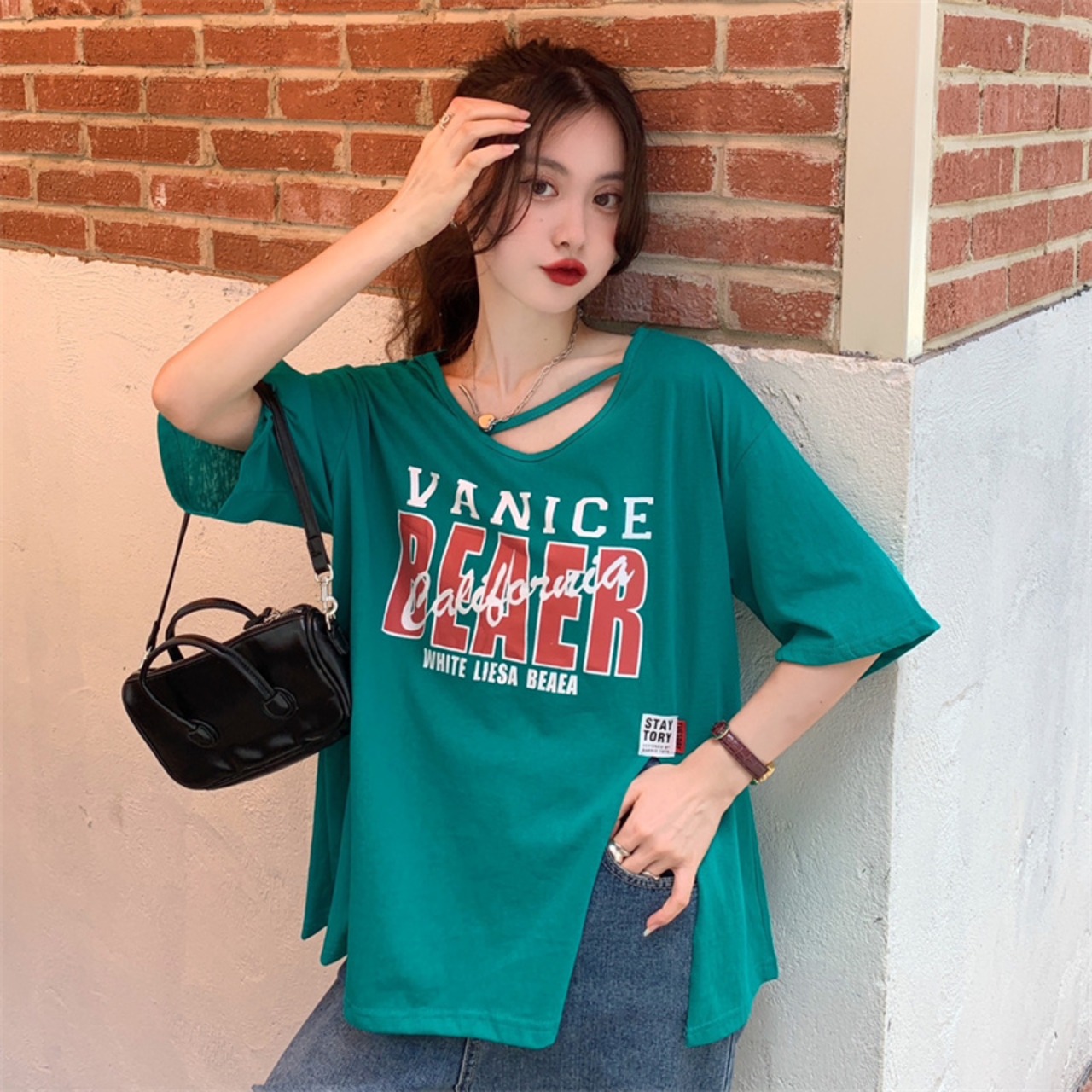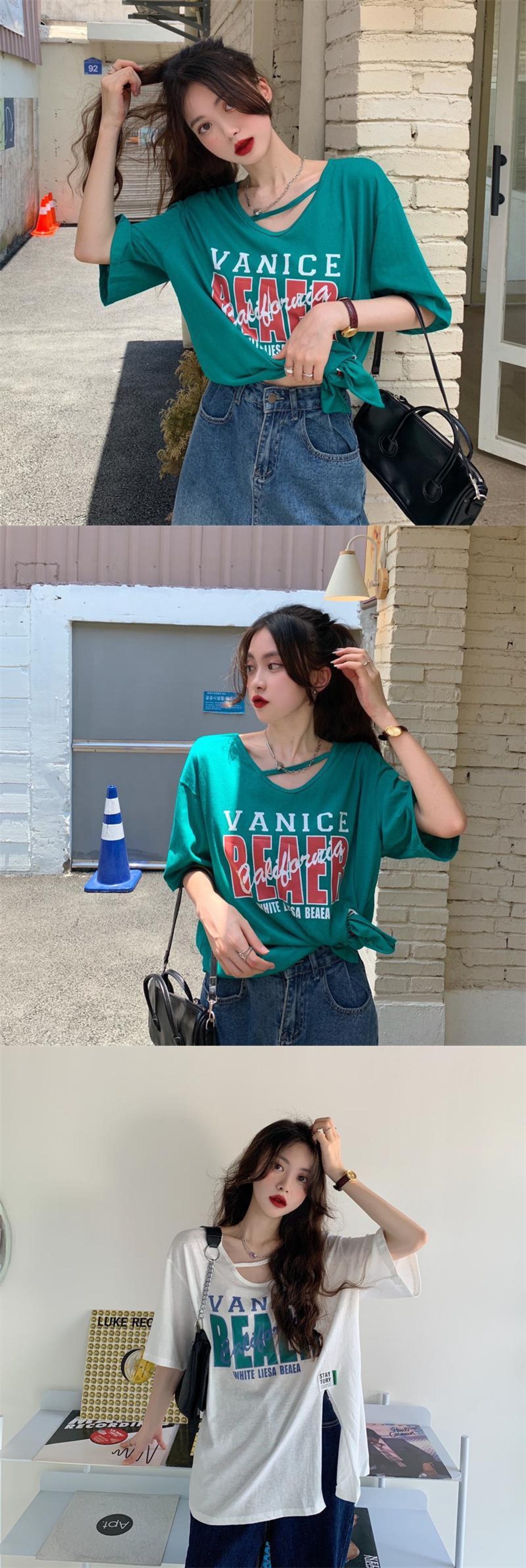 Tシャツ半袖2021年新作レタープリントデザインセンスニッチサマースプリット半袖甘くてスパイシーなブラウス女性 大人ガーリー スウィート キュート カジュアル 夏物 可可里87406643736