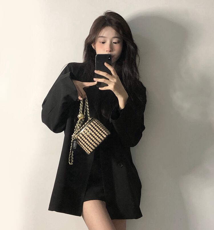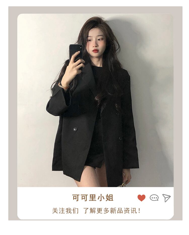 2021年秋バージョン新作ファッション気質シックダブルブレストブラックミドル丈長袖スーツジャケット女性トレンド ロング オータム 秋物 可可里43447994422