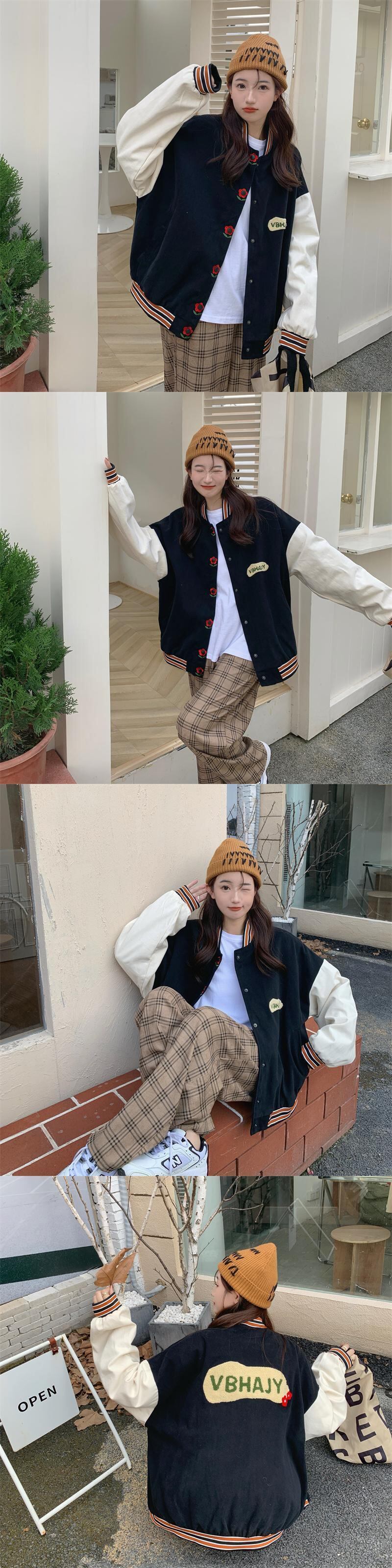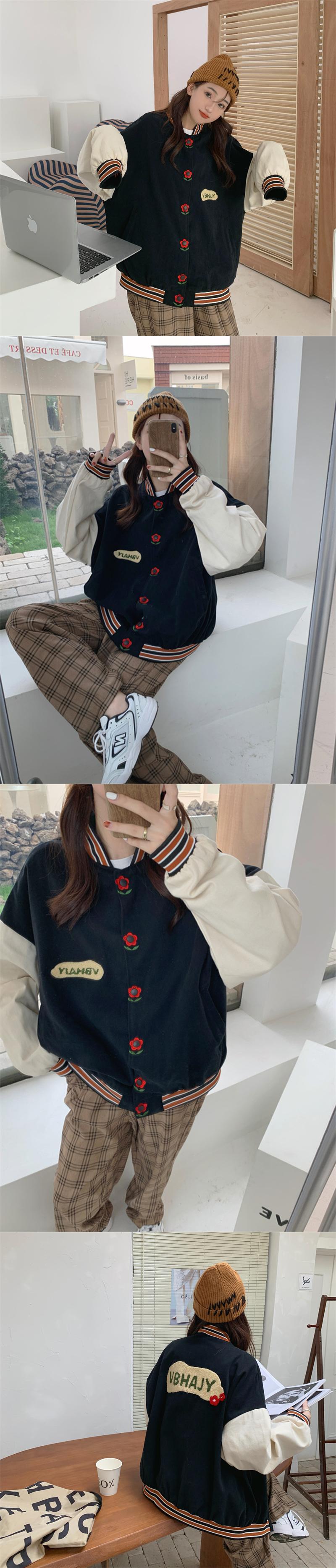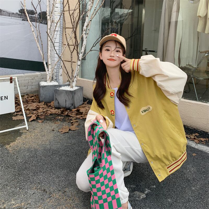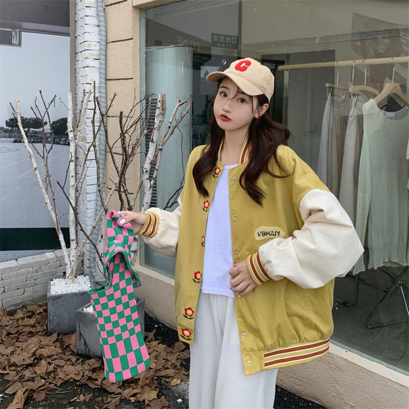 秋バージョン2021新しいファッションシックなフランスの年齢削減ルーズステッチ刺繍長袖野球ユニムジャケット女性 ロング オータム 秋物 可可里22187808014